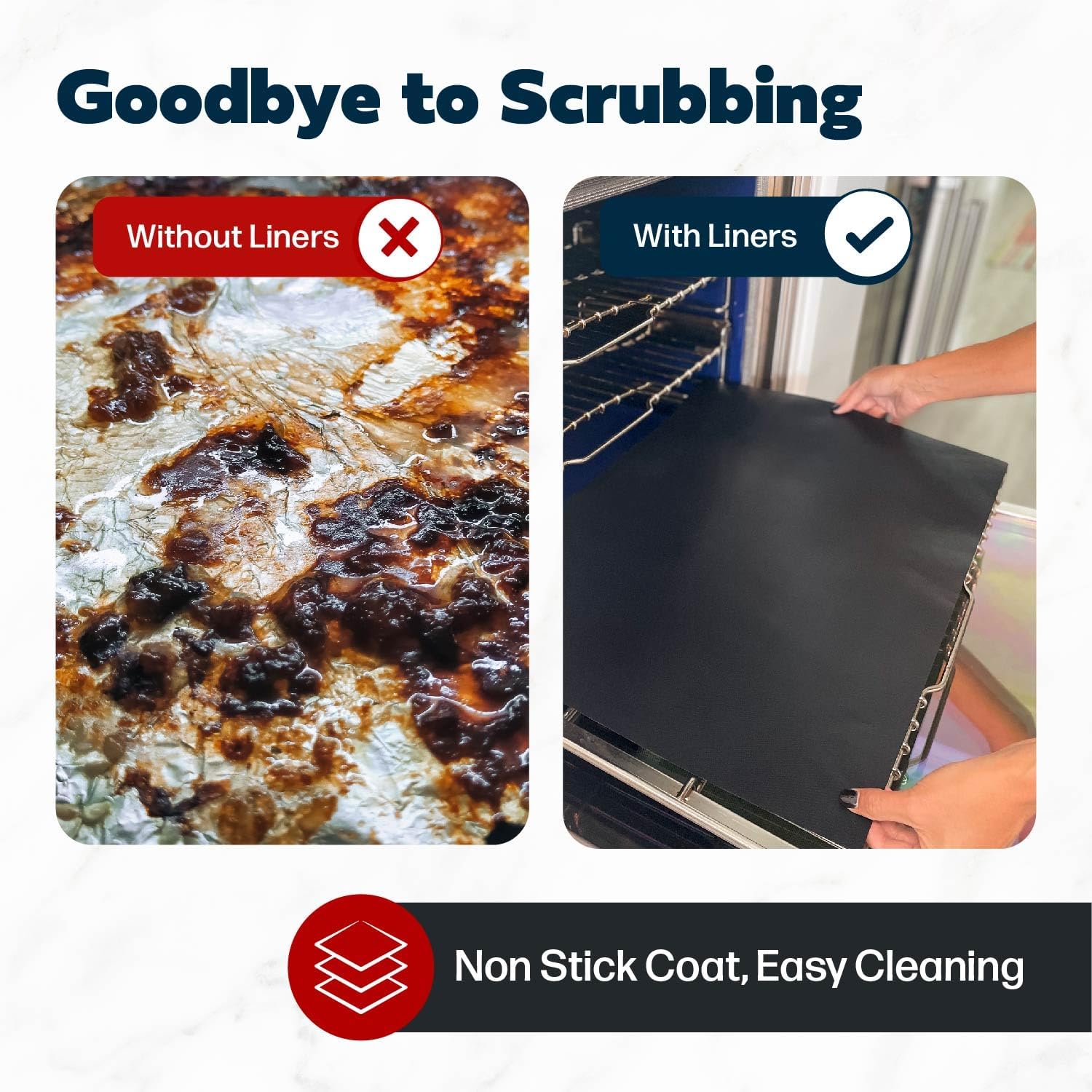 - DURABLE: Our 100% non-stick PTFE toaster oven tray lining keeps the bottom of your oven clean when placed on an oven rack below whatever you're baking! Our oven guard protects your oven from spills, drops, and drips from pies, casseroles, pizza, and more before they burn and stick. Eliminate a tedious chore with our oven liner!