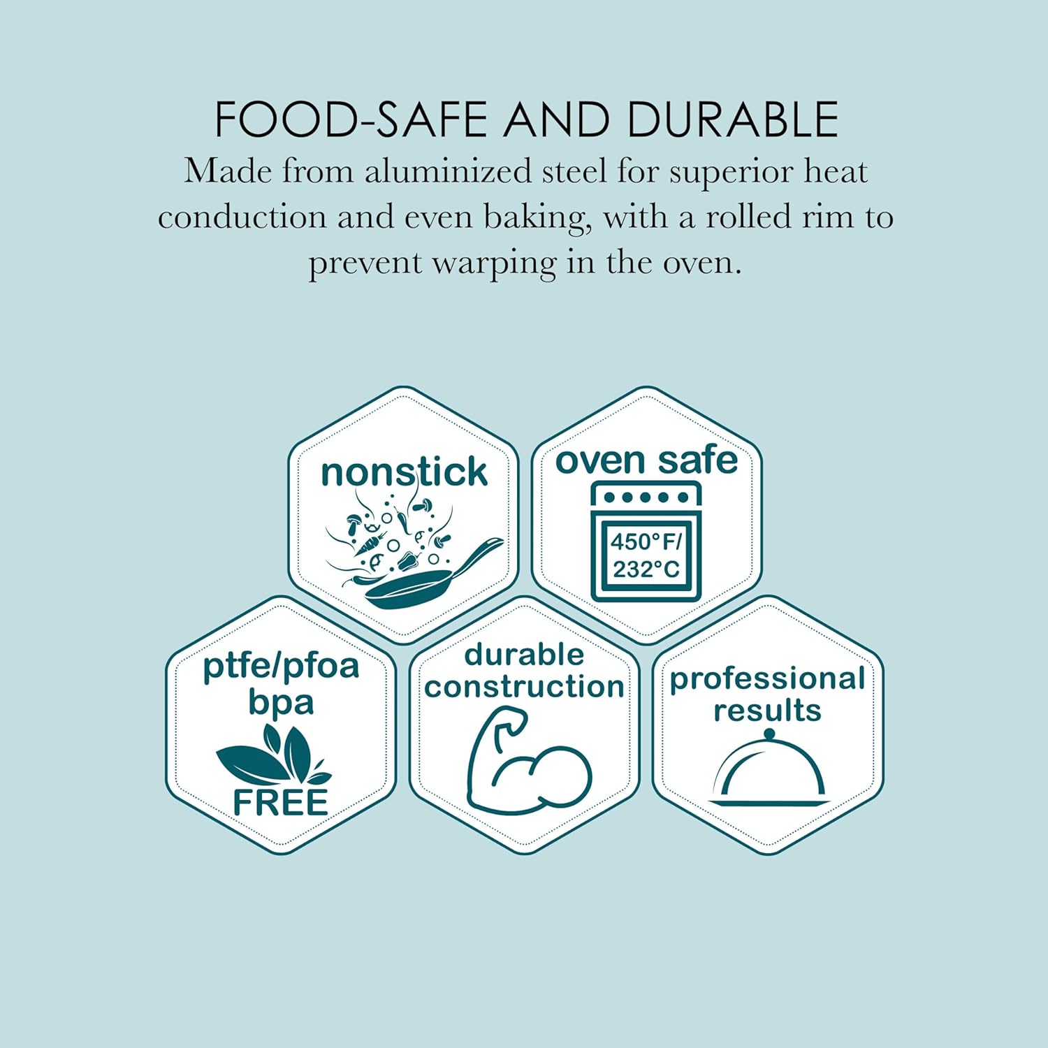 - CONSISTENT HEAT DISTRIBUTION: The baking sheet is made from heavy-weight carbon steel to evenly disperse weight and heat for consistent baking results. Suitable for all oven types