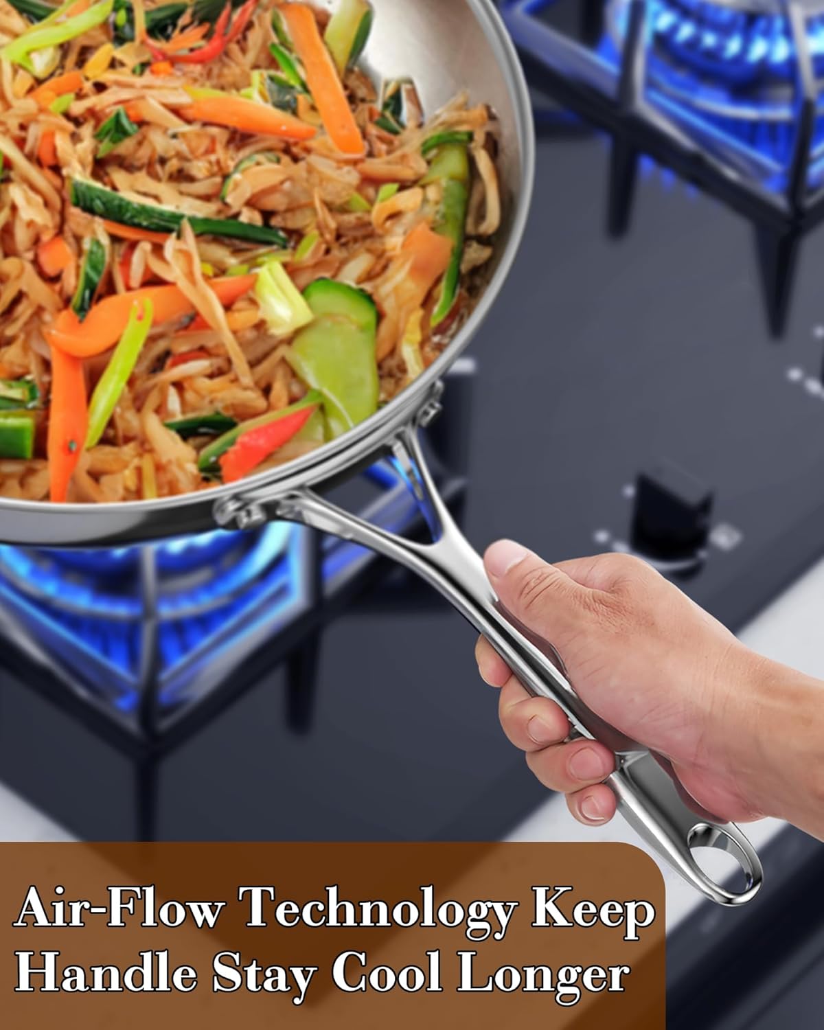 - Perfect Heat Distribution: Tri-ply clad Aluminum core for even/quick heat distribution with excellent heat conduction, more even heat distribution reduces hot spots that can burn foods, allowing the cooking progress more efficient