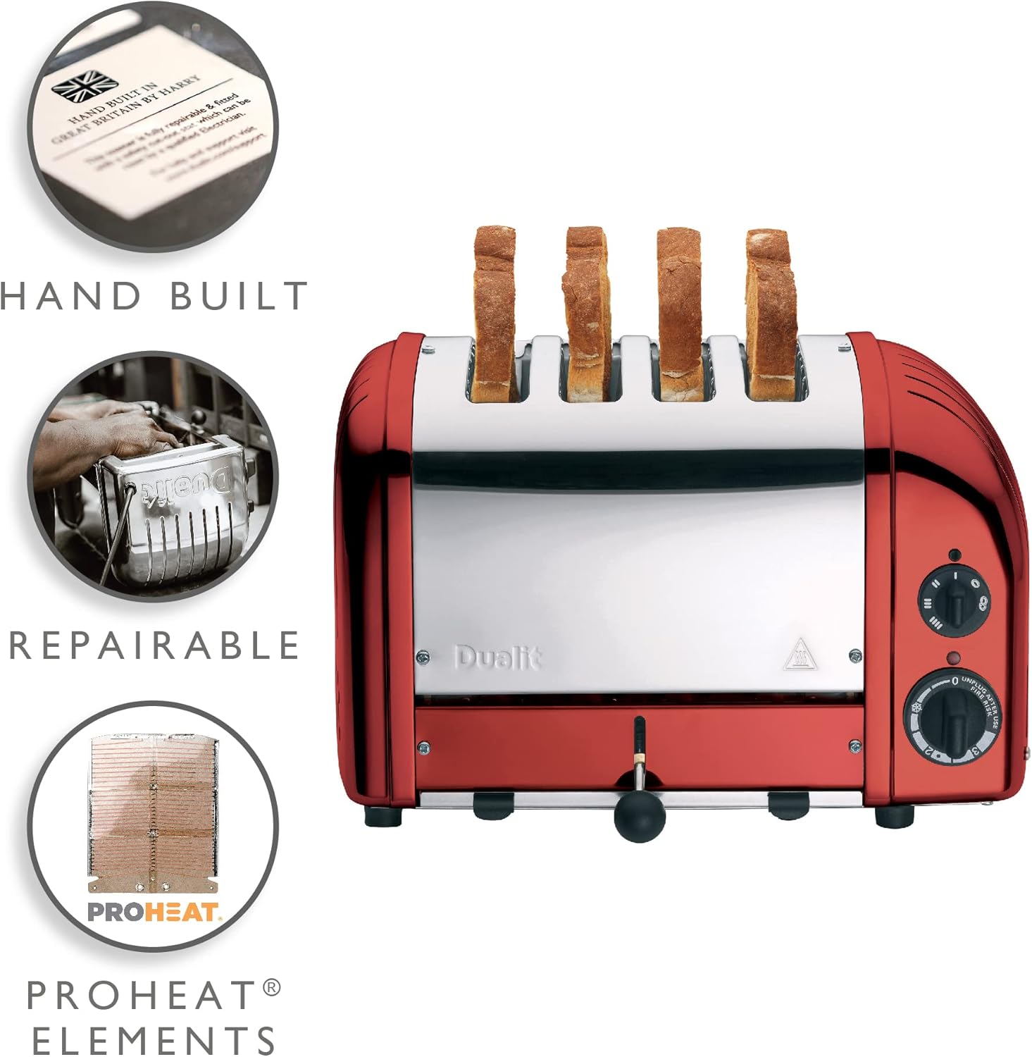 Dualit Classic 4 Slice NewGen Apple Candy Red Toaster - Hand Built in the UK – Replaceable ProHeat® Elements - Heat 1/2/3/4 Toast Slices, Defrost Bread, Mechanical Timer - For Toast, Bagels & More