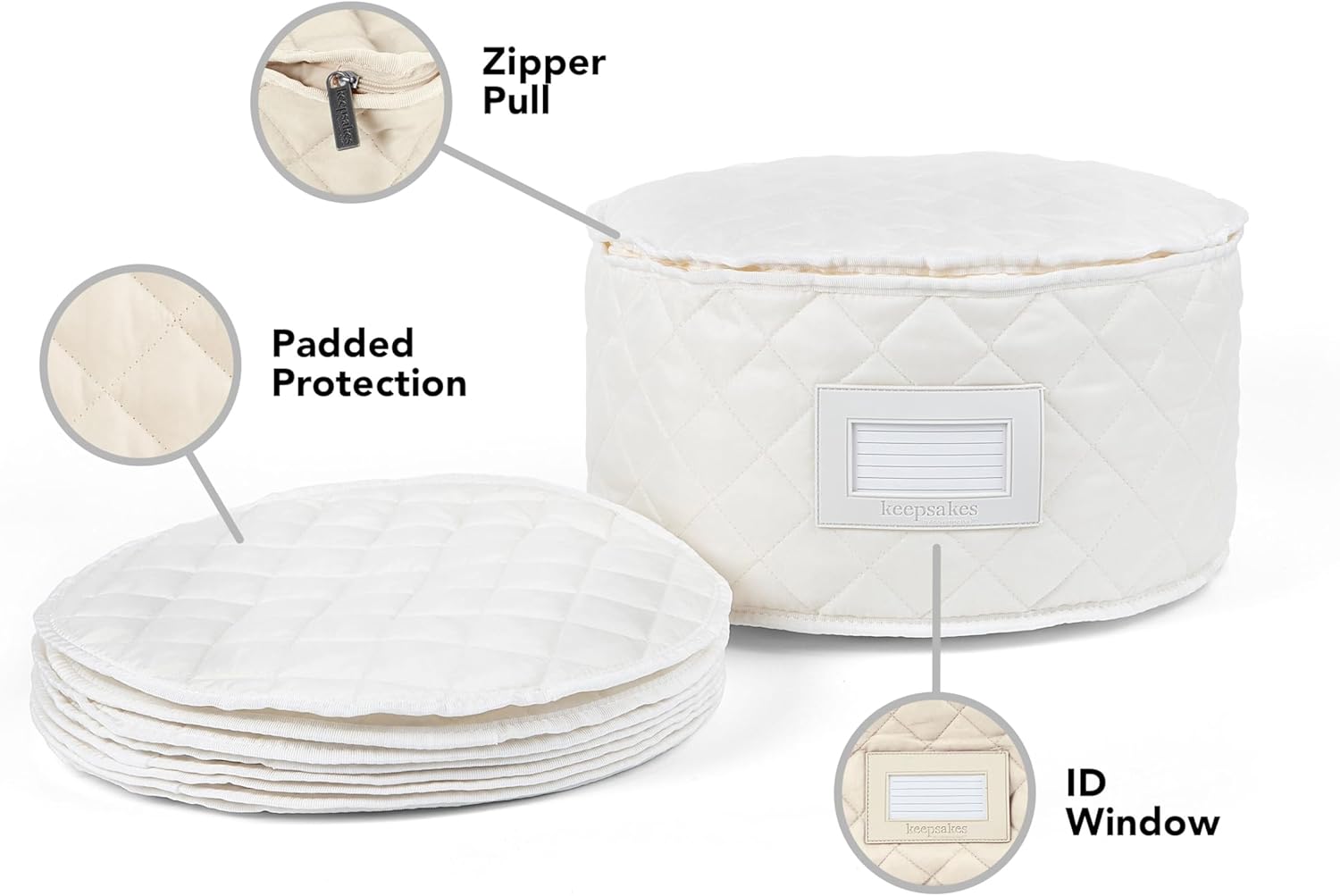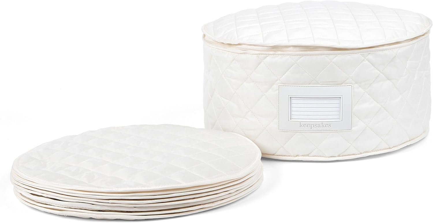 Covermates Keepsakes - Dish Storage - Padded Protection - ID Window - Stain Resistant - Machine Washable - China Storage, Cream