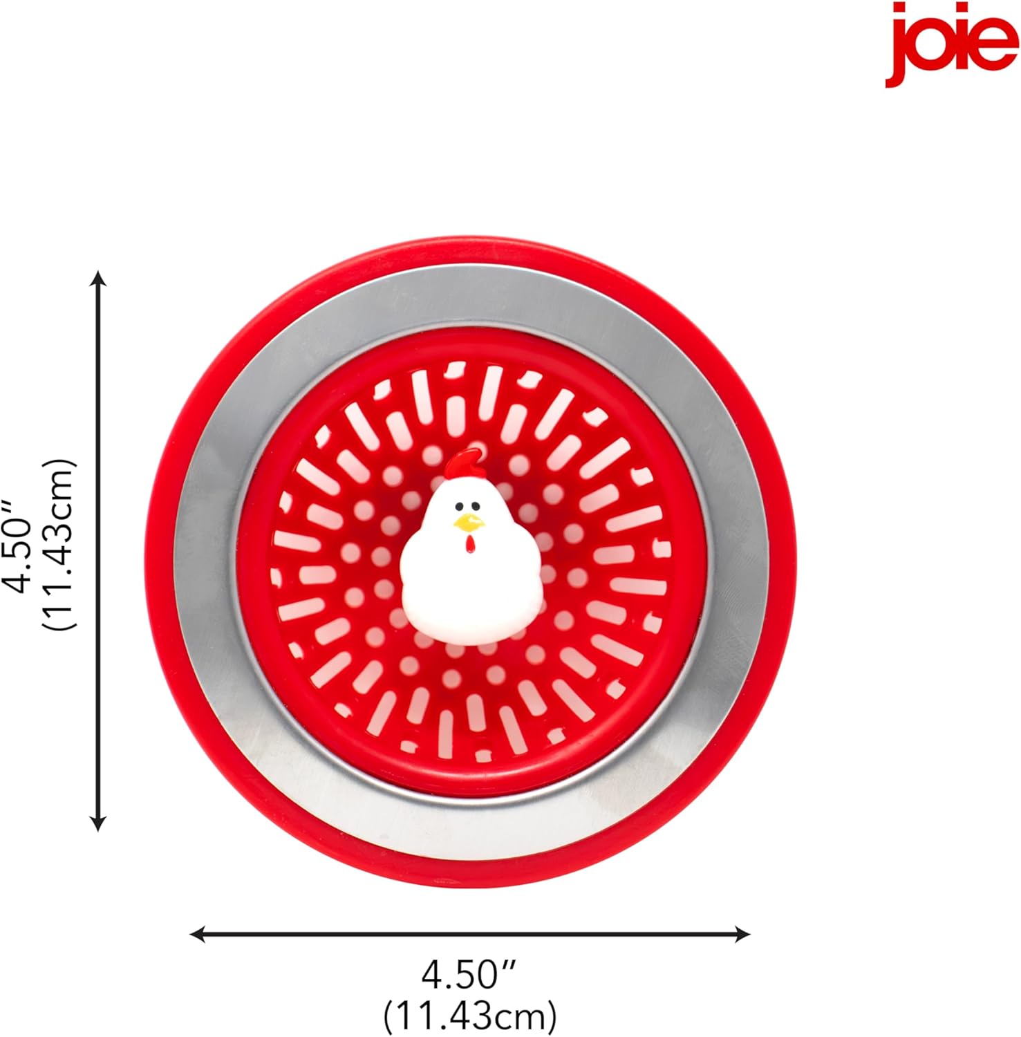 Joie Doodle Doo Kitchen Sink Strainer Basket, Fits All Standard Sinks, Stainless Steel, Cute Garbage Disposal Drain Cover, 4.5-Inch, Red Rooster