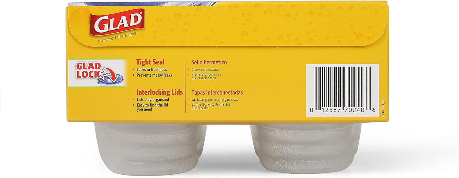 Glad GladWare Mini Round Food Storage Containers - Small Meal Container Holds up to 4 Ounces of Food - Lock Tight Seal, 8 Count