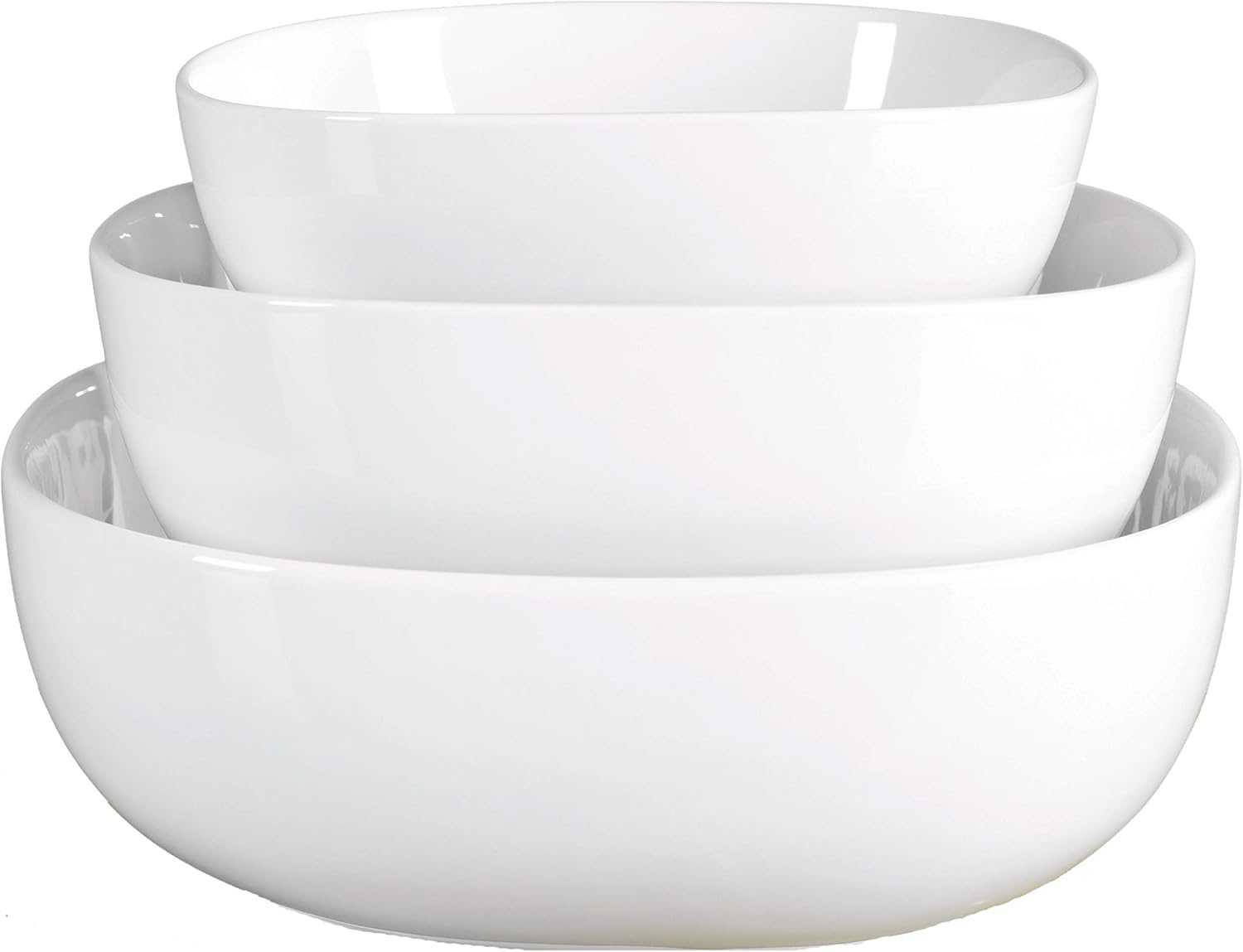 - CLASSIC WHITE It's elegant curves and smooth glossy textured finished in a natural white provides a timeless look which will look great for years to come. This set comes as a set of 3 generously sized bowls; Small- 7.5" diameter, Medium- 9" diameter, and Large- 10.5" bowl.