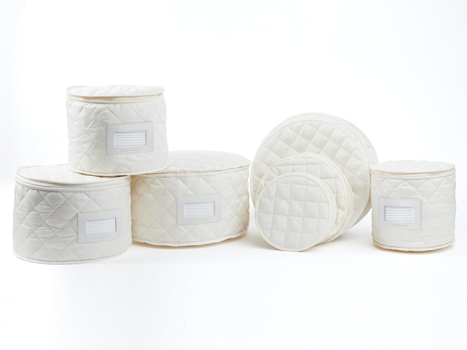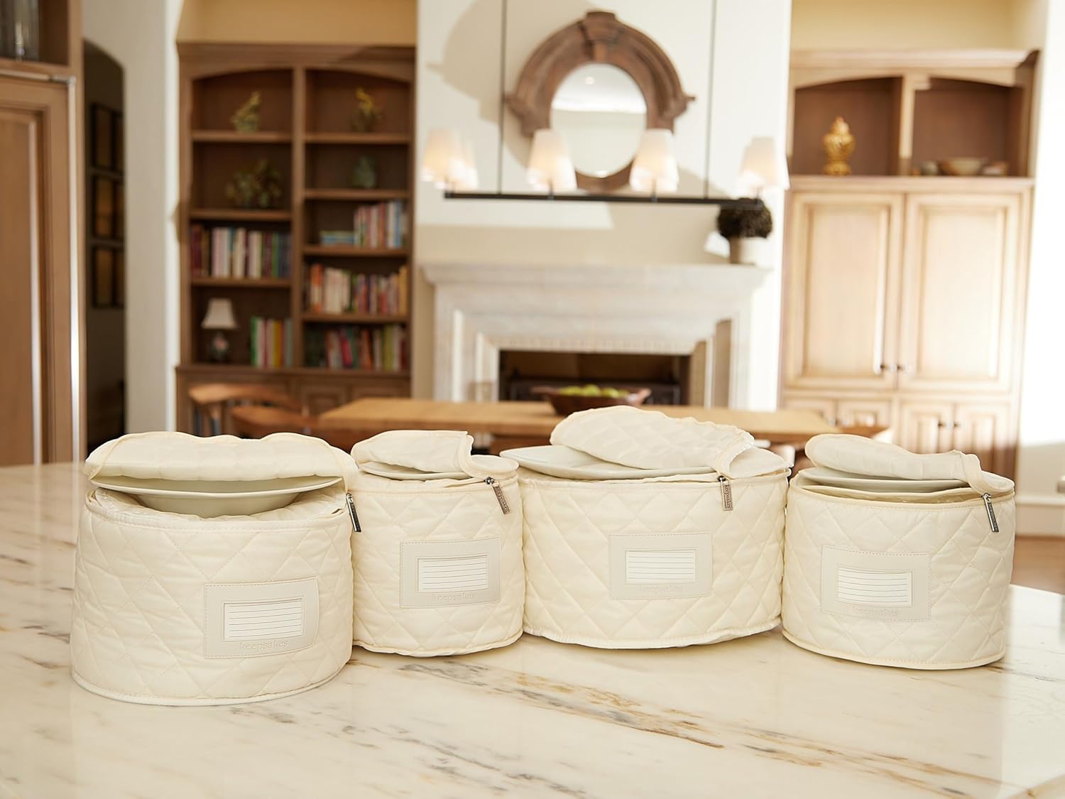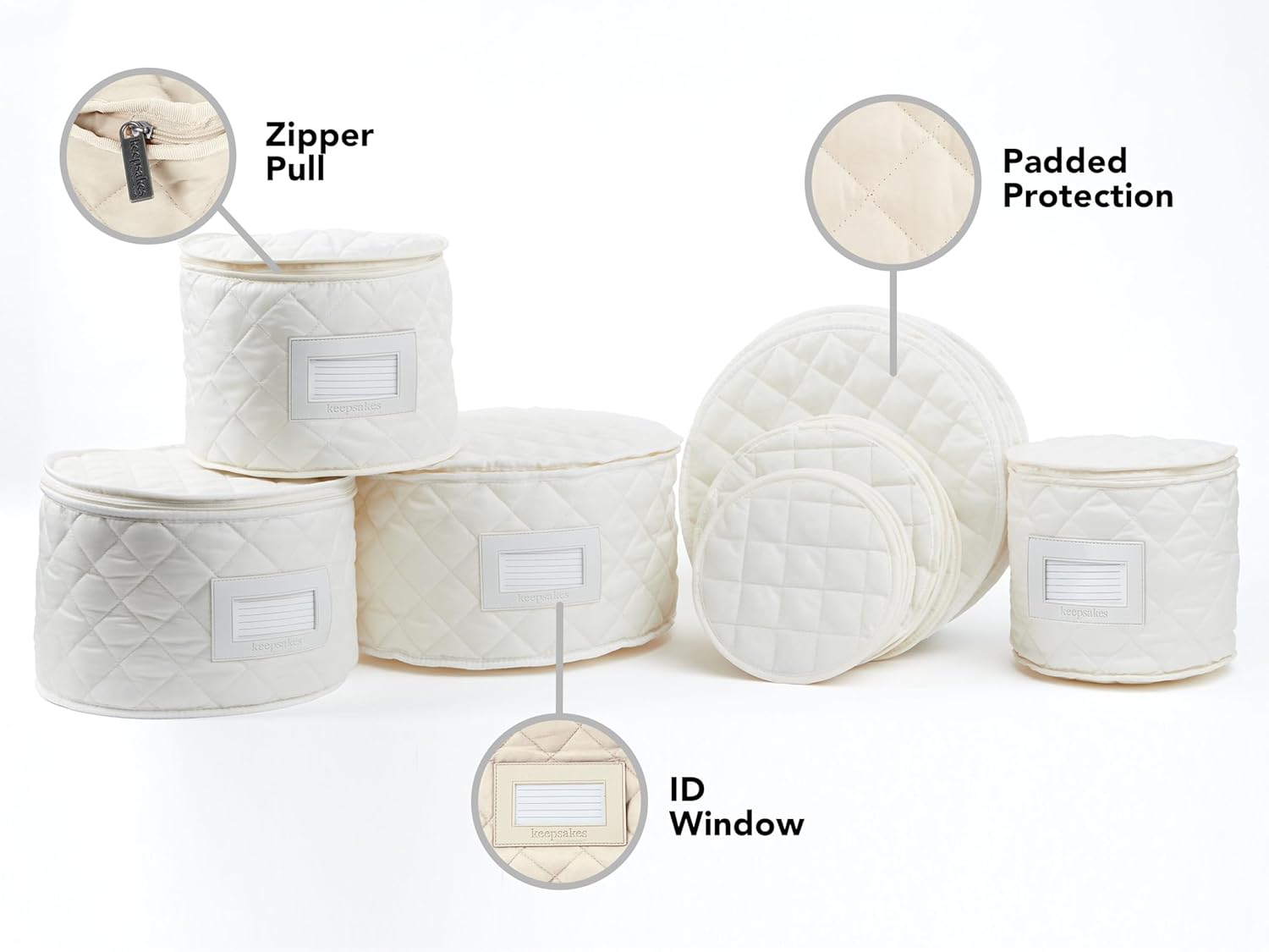 Covermates Keepsakes - Dish Storage Set - Padded Protection - ID Window - Stain Resistant - Machine Washable - China Storage, Cream