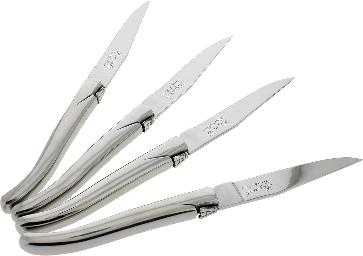 - Luxurious Laguiole Steak Knives Set of 4: Impress your guests with this Laguiole Connoisseur dinner knife set which combines a timeless design and superior quality with chic stainless steel handles; they are also dishwasher-safe, making them easy to care for