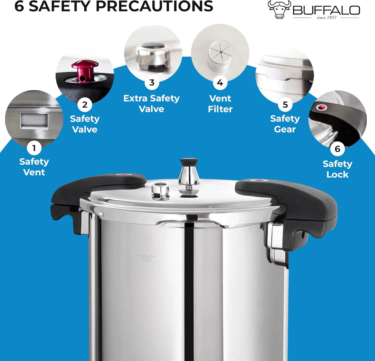 Buffalo Pressure Cooker 21 Qt Stainless Steel - Large Canning Pot with Lid for Home, Commercial Use - Easy to Clean Any Stove Top Pressure Canner, Can Cooker - SG Certificate QCP420
