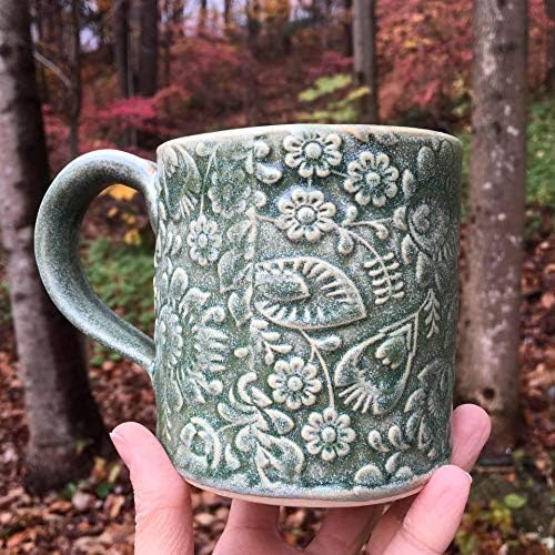 FOLK Embossed Rolling Pin. Wooden Embossing Rolling Pin With Folksy Flowers for Pottery and Cookies by Algis Crafts