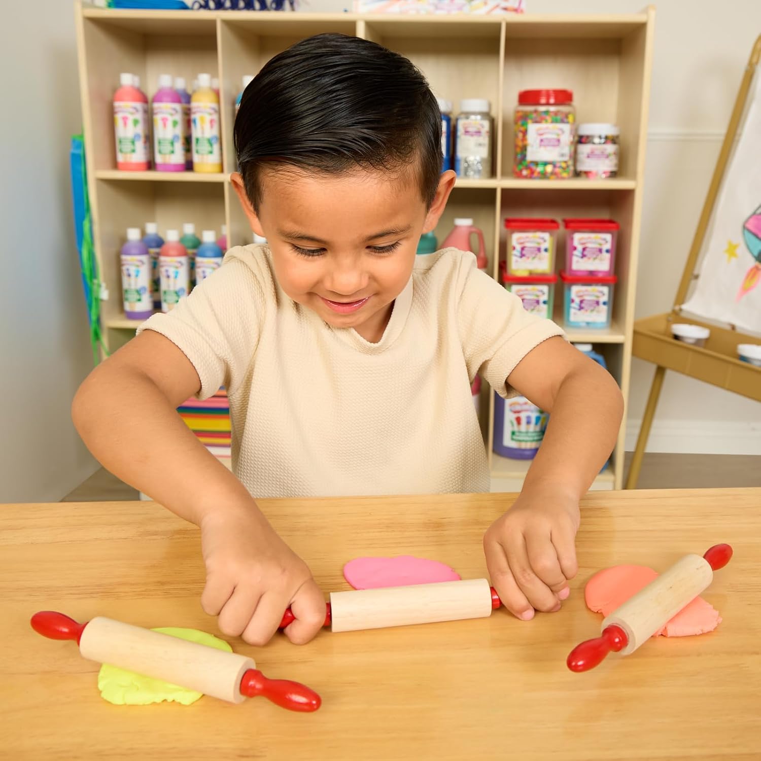 - BENEFITS: Playing and creating with clay and dough is beneficial for refining motor skills. Arts & crafts promotes self-expression, creative expression and thinking, as well as imagination. It is a perfect activity for screen-free fun!