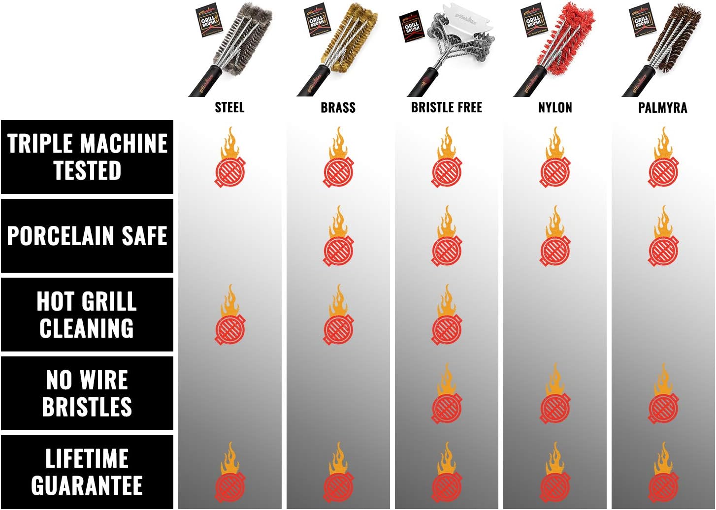 - Safe Grill Cleaning: Each of our Essentials Steel Grill Brushes are built from heavy-duty stainless steel and are triple machine tested to the highest safety standards so you can be confident you’re getting the strongest bbq brush available. This means you can finally get a clean grill without having to worry about your family’s safety.