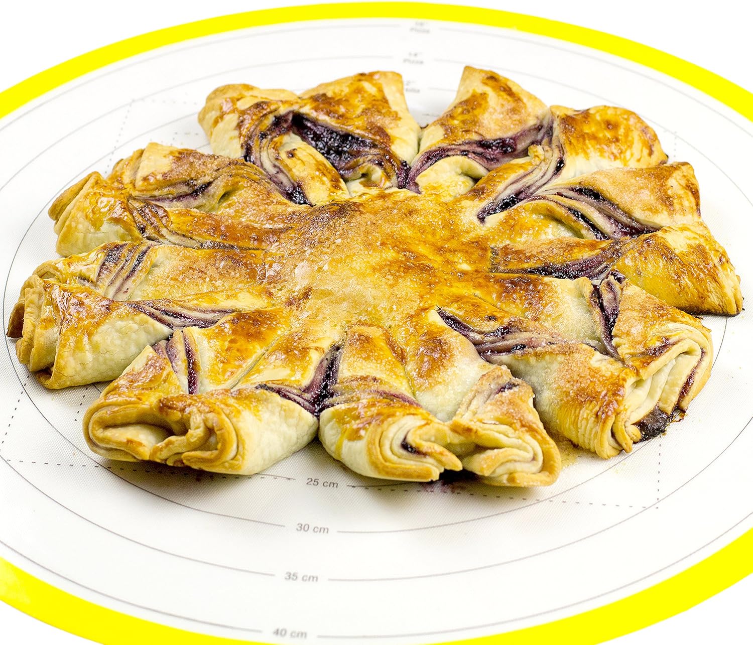 17.75 Inch Round Silicone Pastry Mat | Non Stick BPA-Free | Metric & Imperial Guides | Oven Microwave Freezer Dishwasher Safe - 450 °F to -40 °F