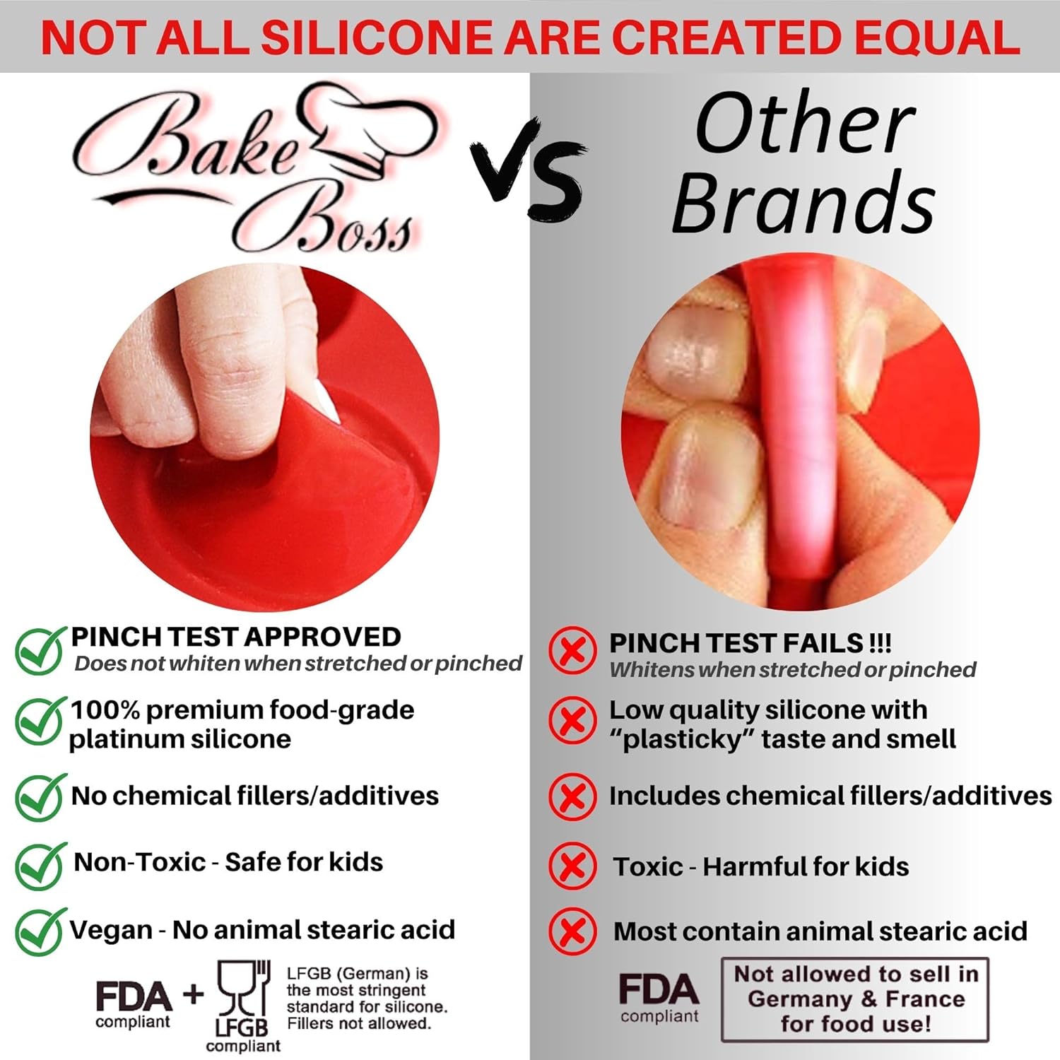 - PINCH TEST APPROVED SILICONE: Our silicone muffin pans for baking are 100% BPA free European LFGB food grade silicone passes the "pinch test". Twist our silicone baking cups muffin, and it won't turn white. Absolutely no odor while cooking in this cupcake tray.