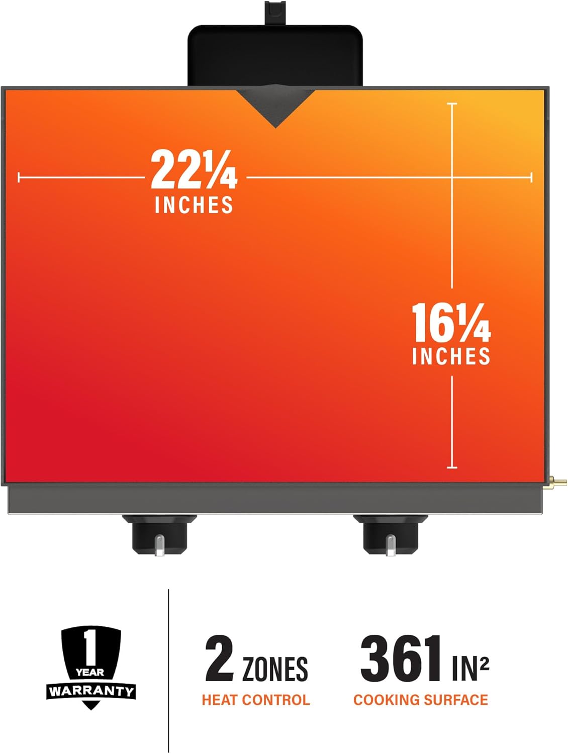 - Total Heat Control: Two independently controlled H-shaped burners ensure optimal heat distribution and even cooking on the griddle surface while allowing you to cook multiple foods at different temperatures simultaneously.