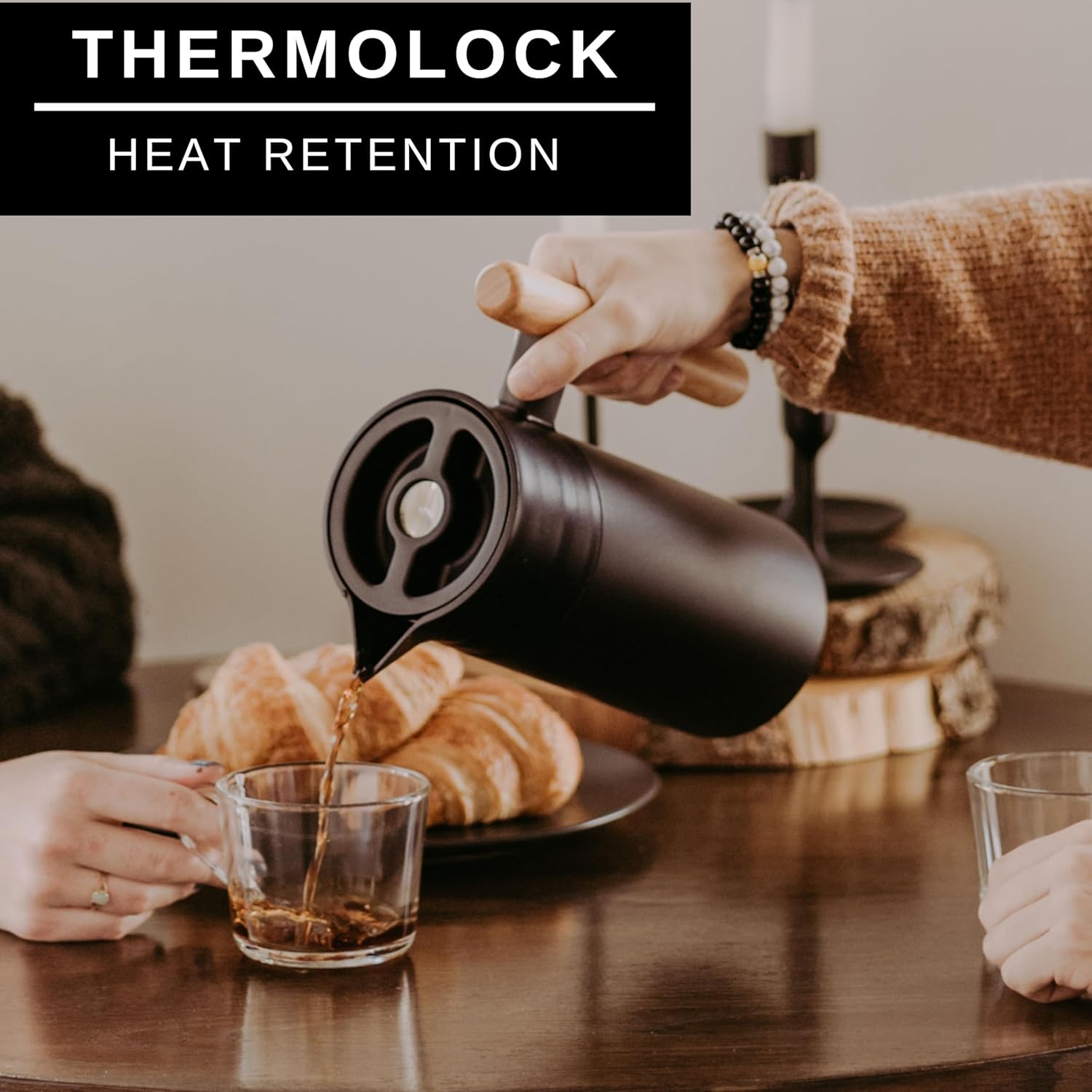 Hastings Collective Thermal Coffee Carafe 40 Oz - Stainless Steel Double Walled Vacuum Insulated Carafe - 1 Liter Thermal Coffee Pot Thermos, Travel Size Beverage Dispenser with Tea Infuser (Black)