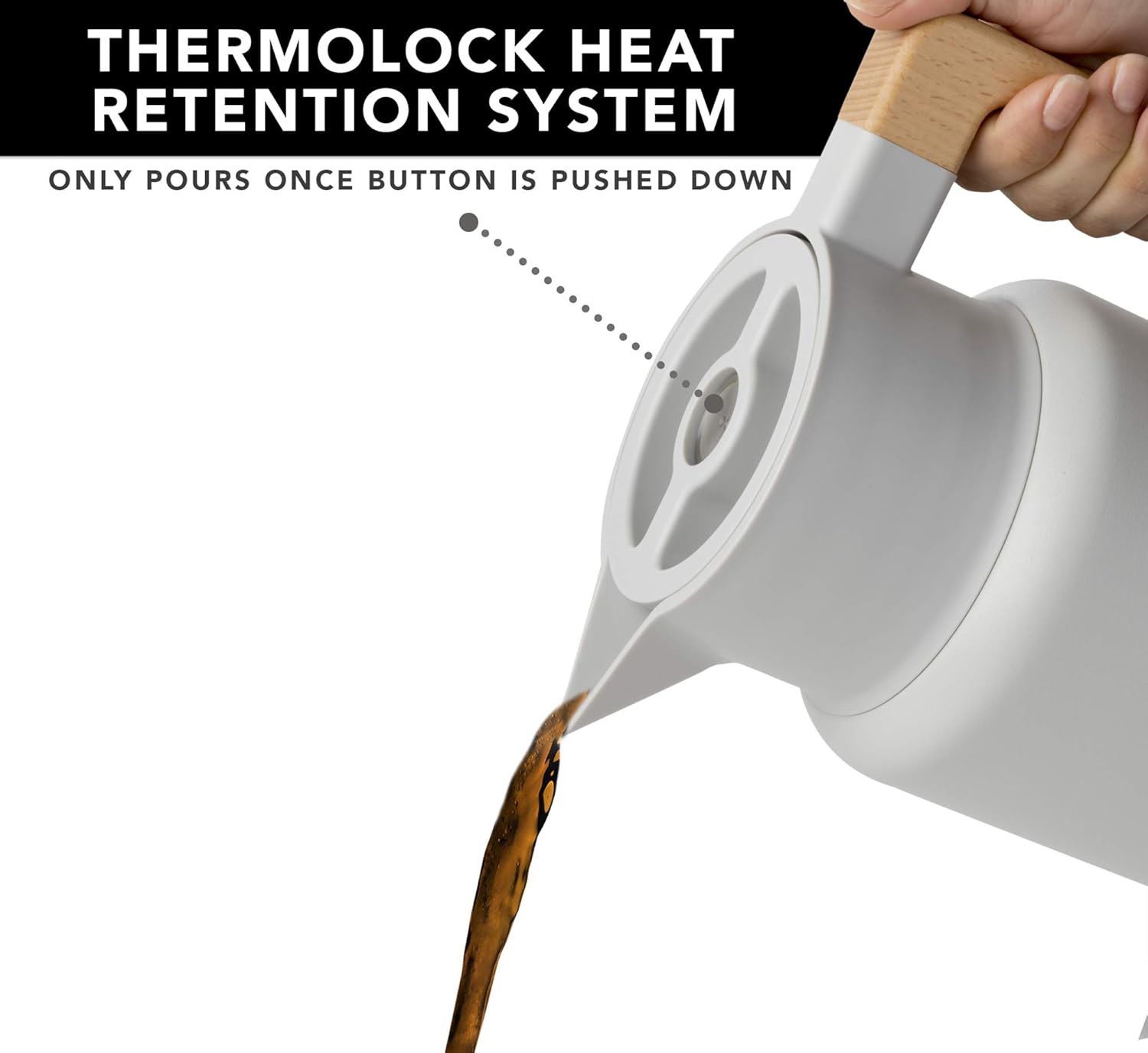 - EURO-SLEEK DESIGN, stunning function. Our thermal coffee carafe features a double wall, single spout opening, a push button top and comfortable coffee thermal dispenser handle for easy pouring!