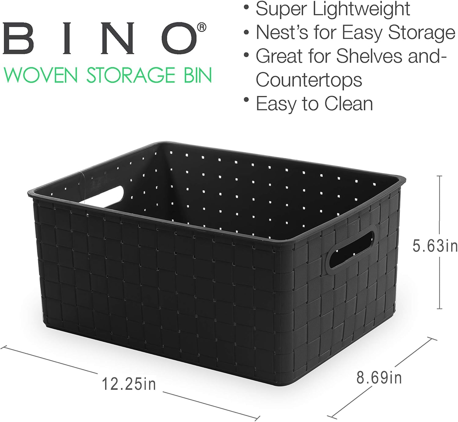 BINO Plastic Basket, Medium - Black, 4 Pack, The Stable Collection, Multi-Use Storage Basket, Rectangular Cabinet Organizer, Home & Office Storage Organizer, Baskets for Bathroom Organizing