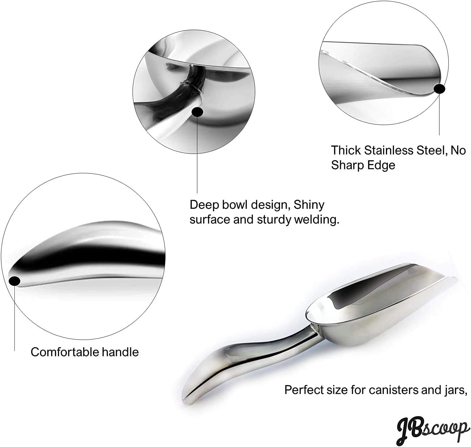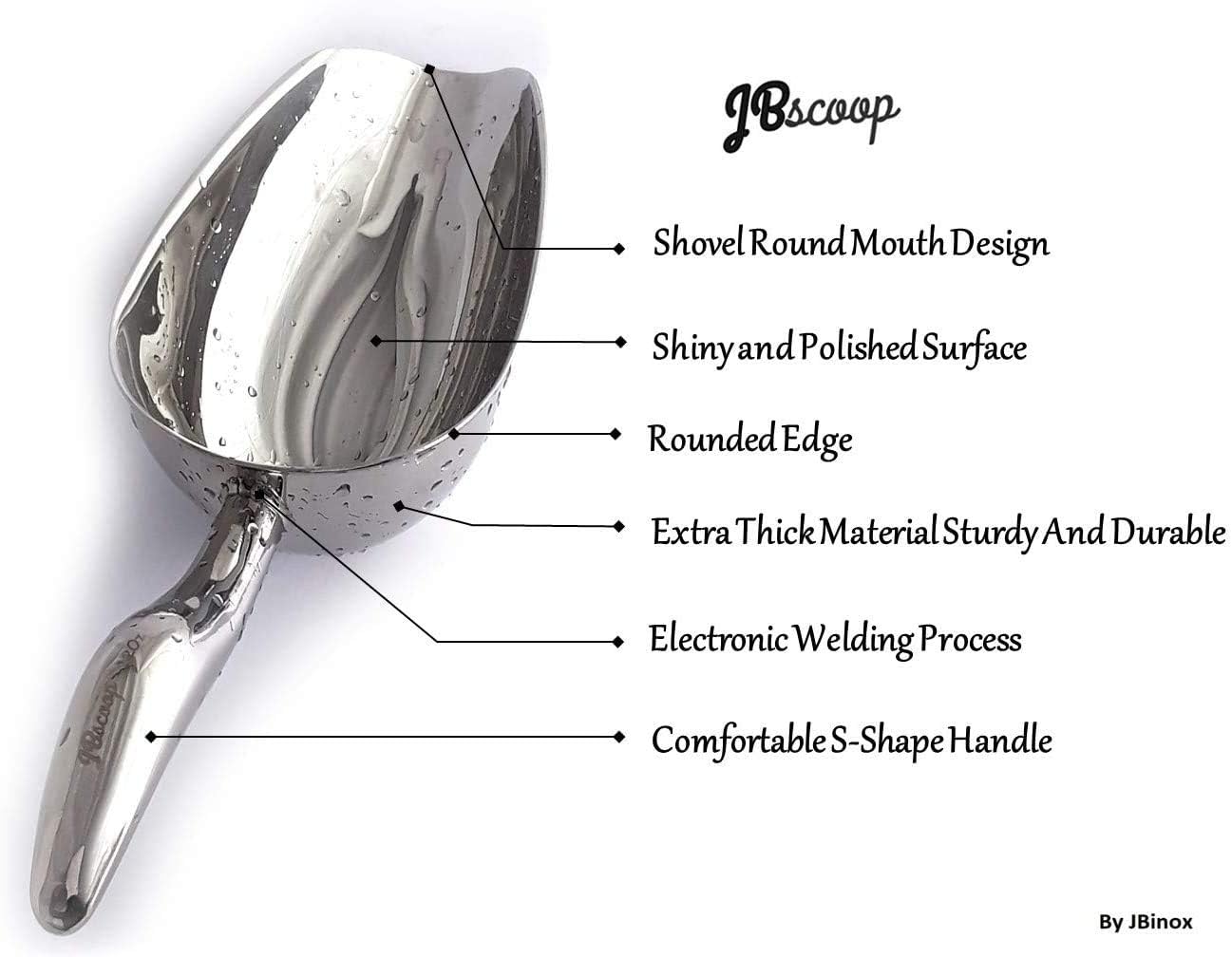 - STURDY & DURABLE - JBinox ice scoop is made of high quality stainless steel, Handle solidly welded to body for repeated use, Stainless steel scoop would last for many years
