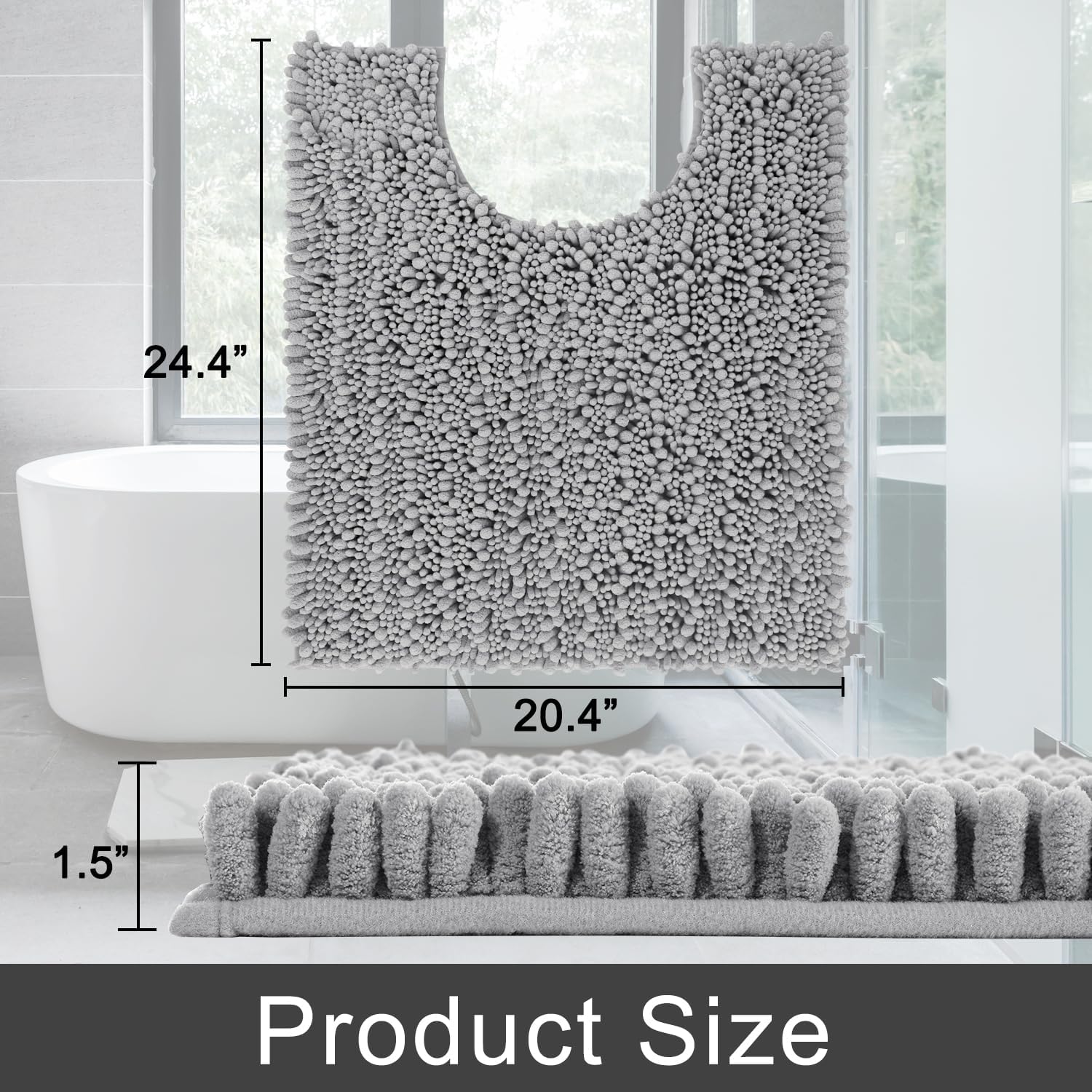 Yimobra Toilet Rug U Shaped Washable 24x20 Inch - Ultra Soft Absorbent Chenille Bath Rugs for Toilet, Quick Dry & Machine Washable, Non Slip Contour Bathroom Mat, Gray