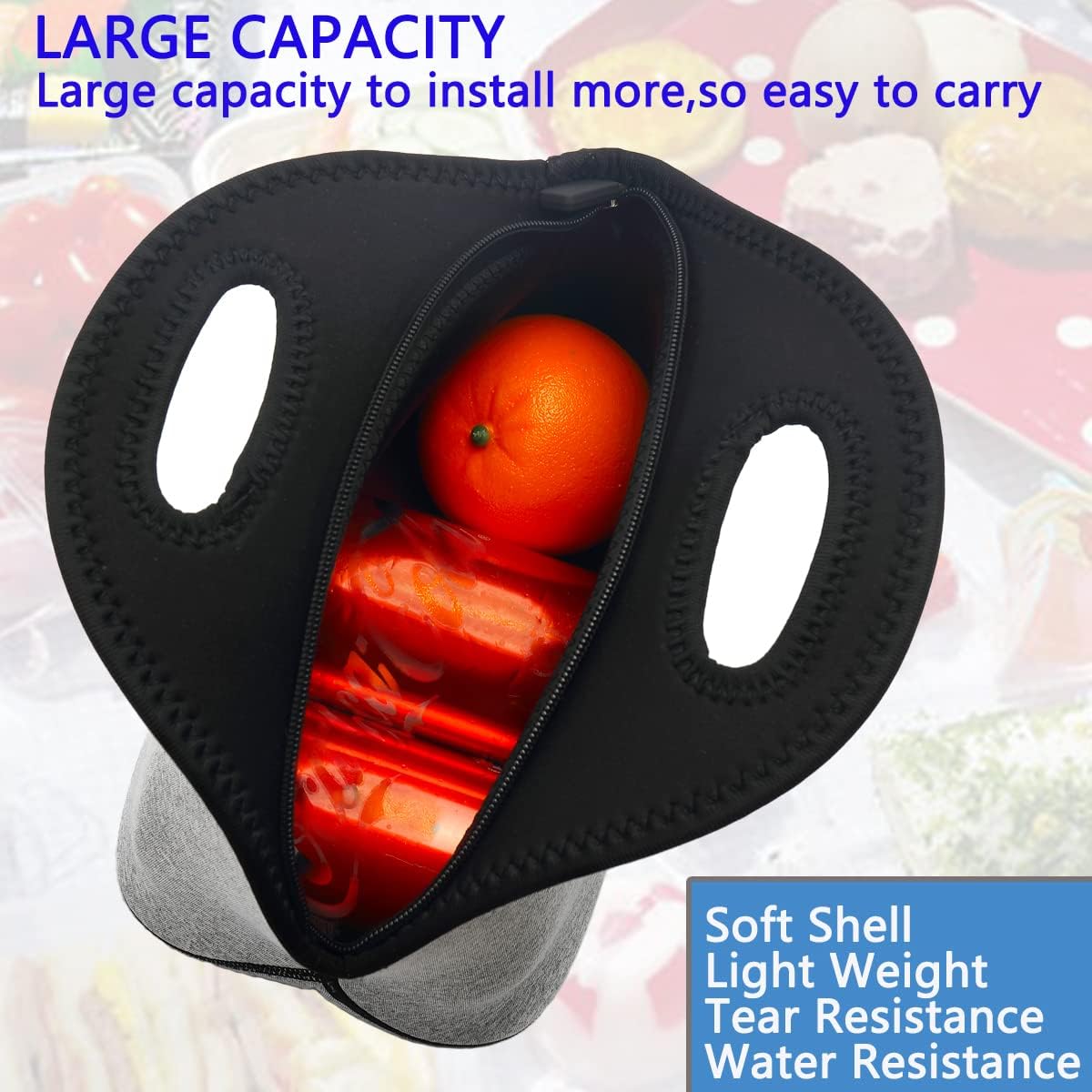 - Material:The Flowfly lunch totes are made of 5MM thick high quality neoprene material and smooth sturdy zipper and comfort-grip rubber tab,Vinyl-free, PVC-free.Neoprene is a kind of material which can also make wet suit,it can keep a surfer's body temperature stable, just think our lunch bag will insulate your lunch, it is durable and easy to clean.
