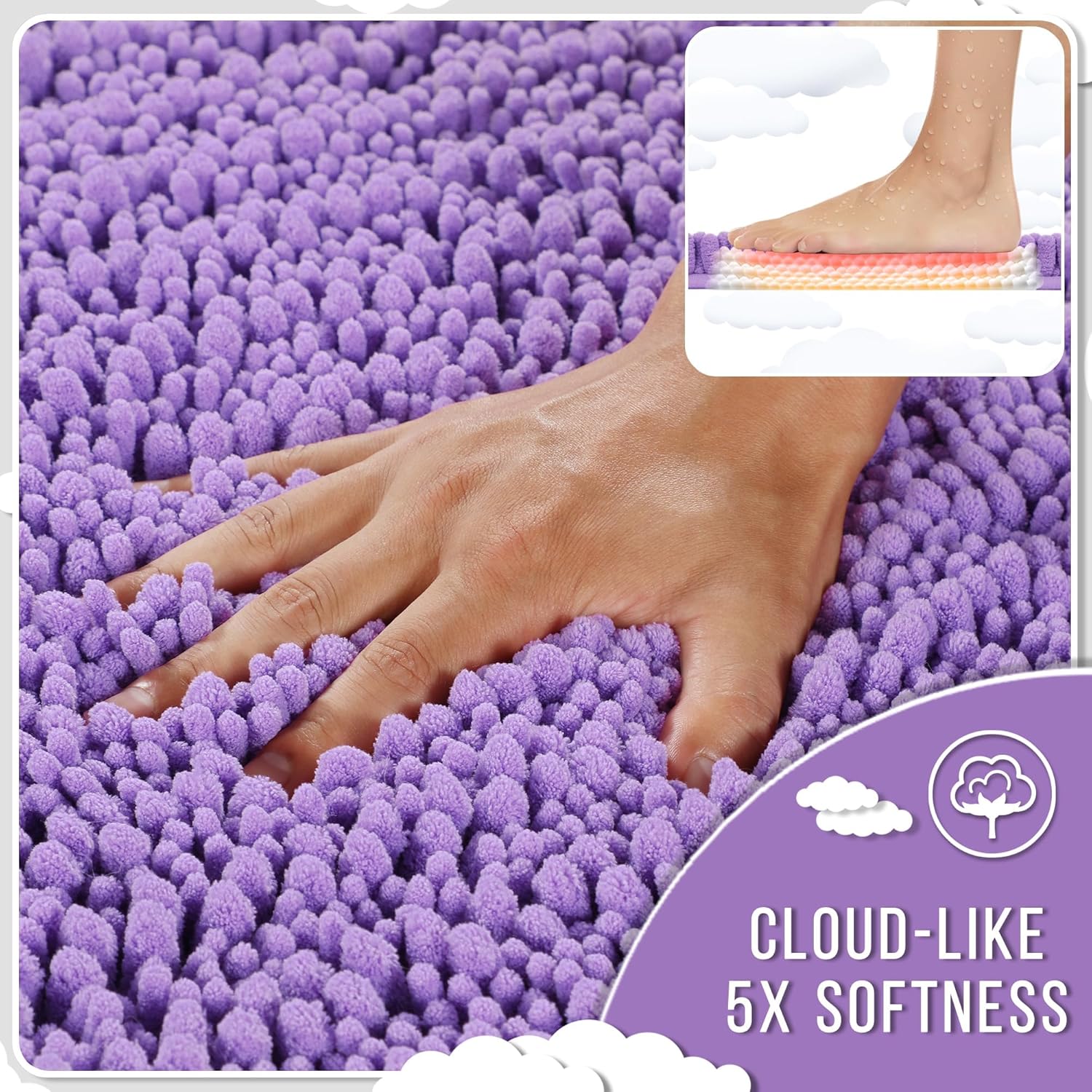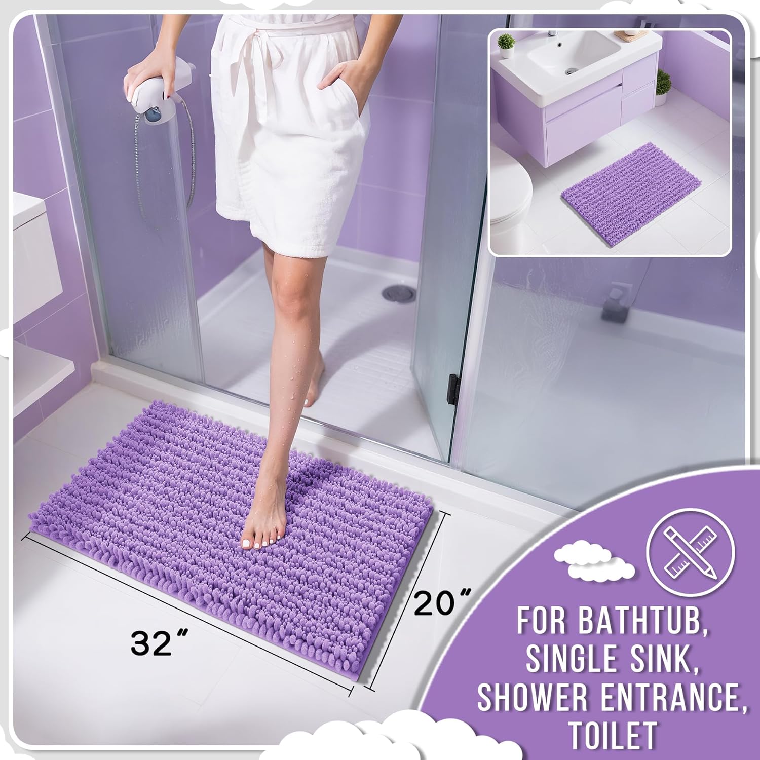 Yimobra Bathroom Rugs Non Slip Washable 32x20 Inch - Ultra Soft Absorbent Chenille Bath Mat, Quick Dry Shaggy Floor Carpet for Tub Shower, Lavender Home Decor Accessories