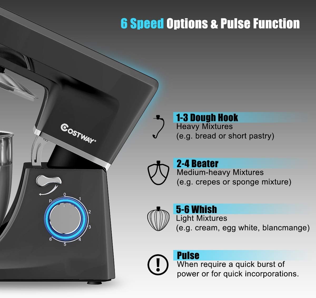 COSTWAY Stand Mixer, 6-Speed 7.5 QT Tilt-head Electric Kitchen Food Mixer 660W with Stainless Steel Bowl, Dough Hook, Beater, Whisk