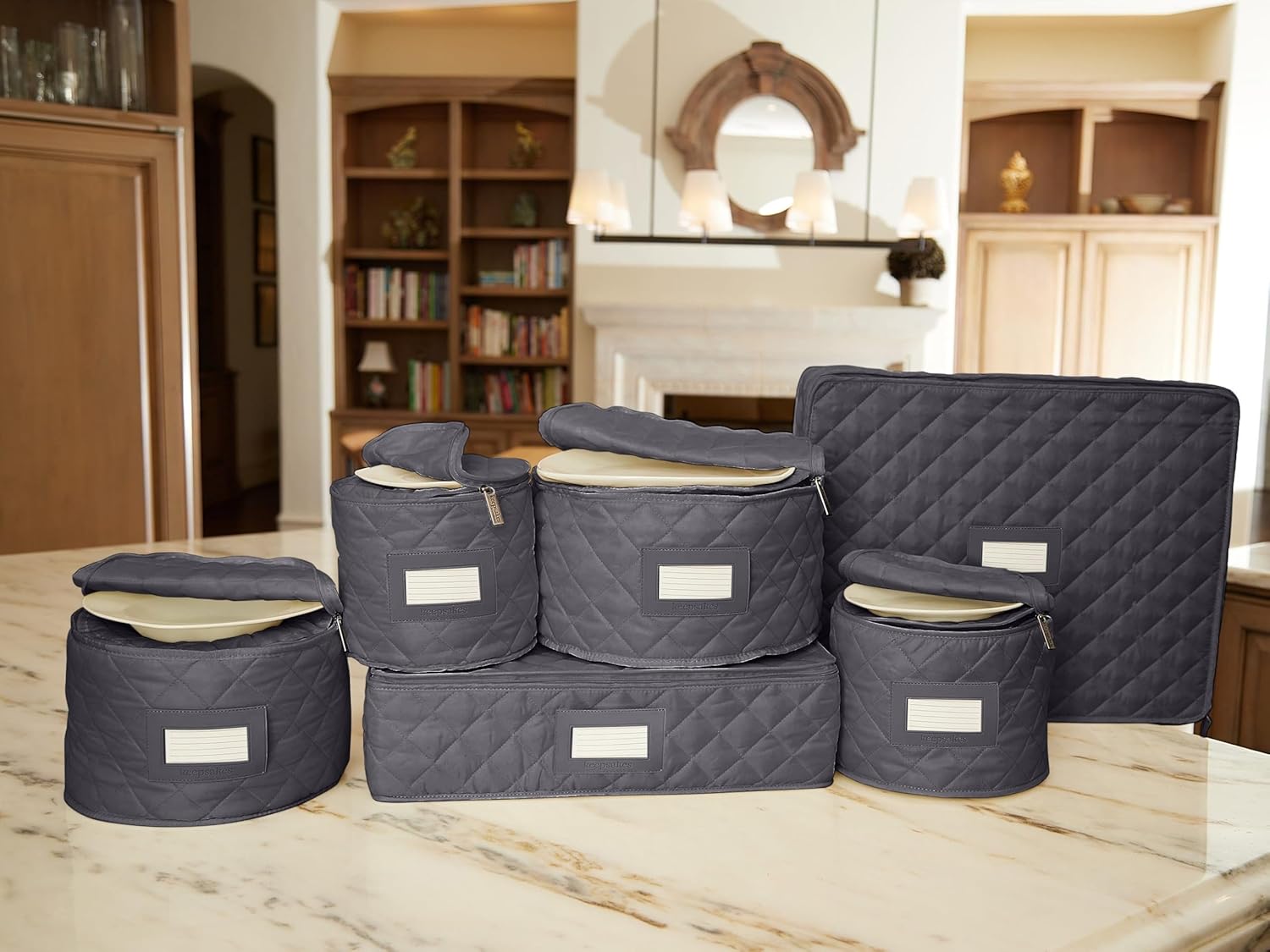 Covermates Keepsakes - Dish Storage Set - Padded Protection - ID Window - Stain Resistant - Machine Washable - China Storage, Slate