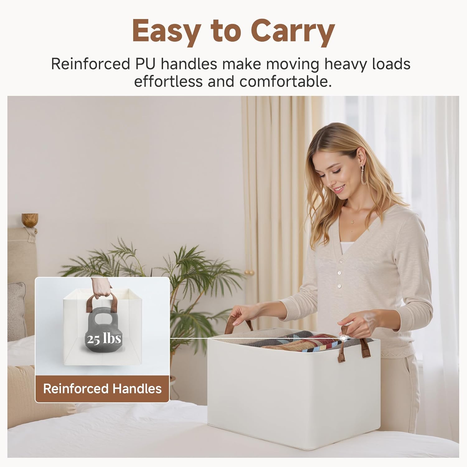 - Handle with Ease: With the 2 PU handles securely riveted to the sides of the storage bin, you can easily carry items without tearing the handles.