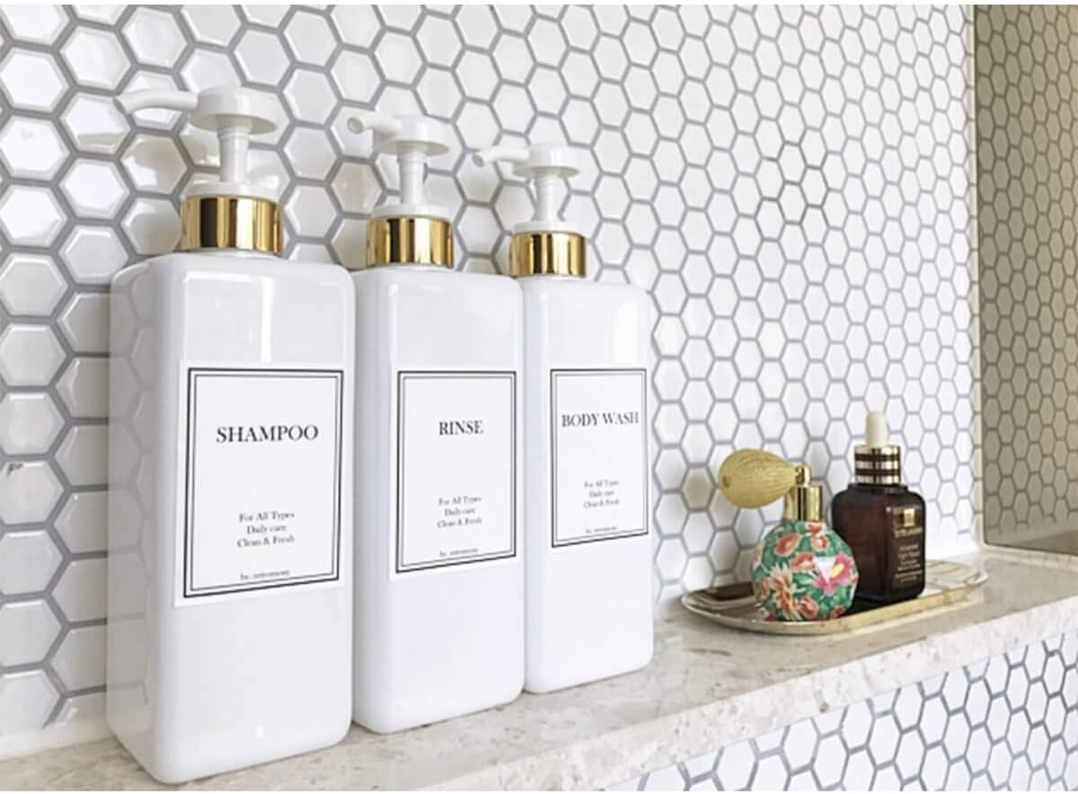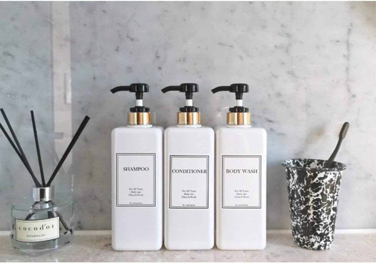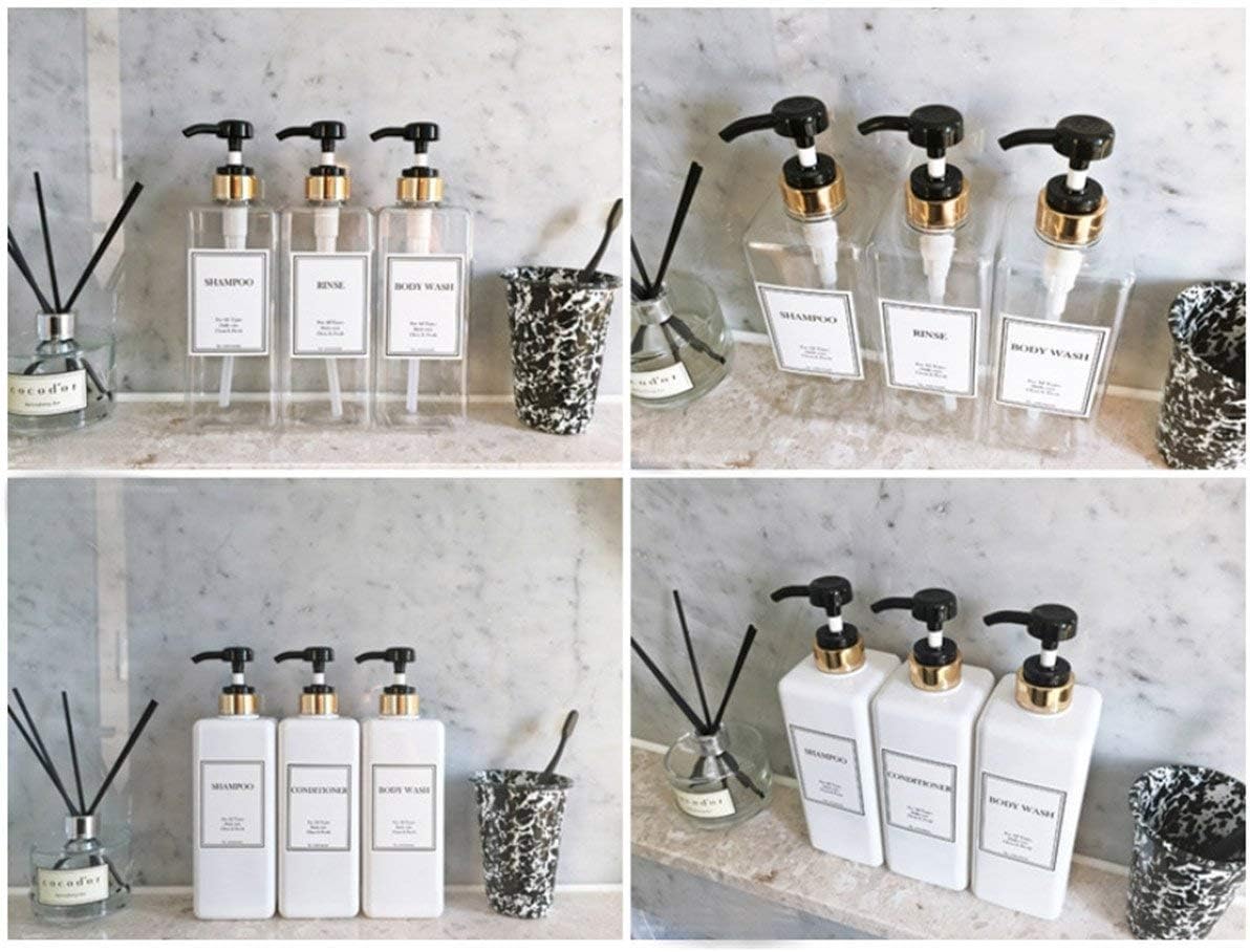 Beauty Bathroom Preprinted Labels, Water Resistant Organization labels, Sticker for Vanity Countertop, Kitchen, Pantry, Toiletry, 24 Dispenser Shampoo labels stickers waterproof (Pack of 2)