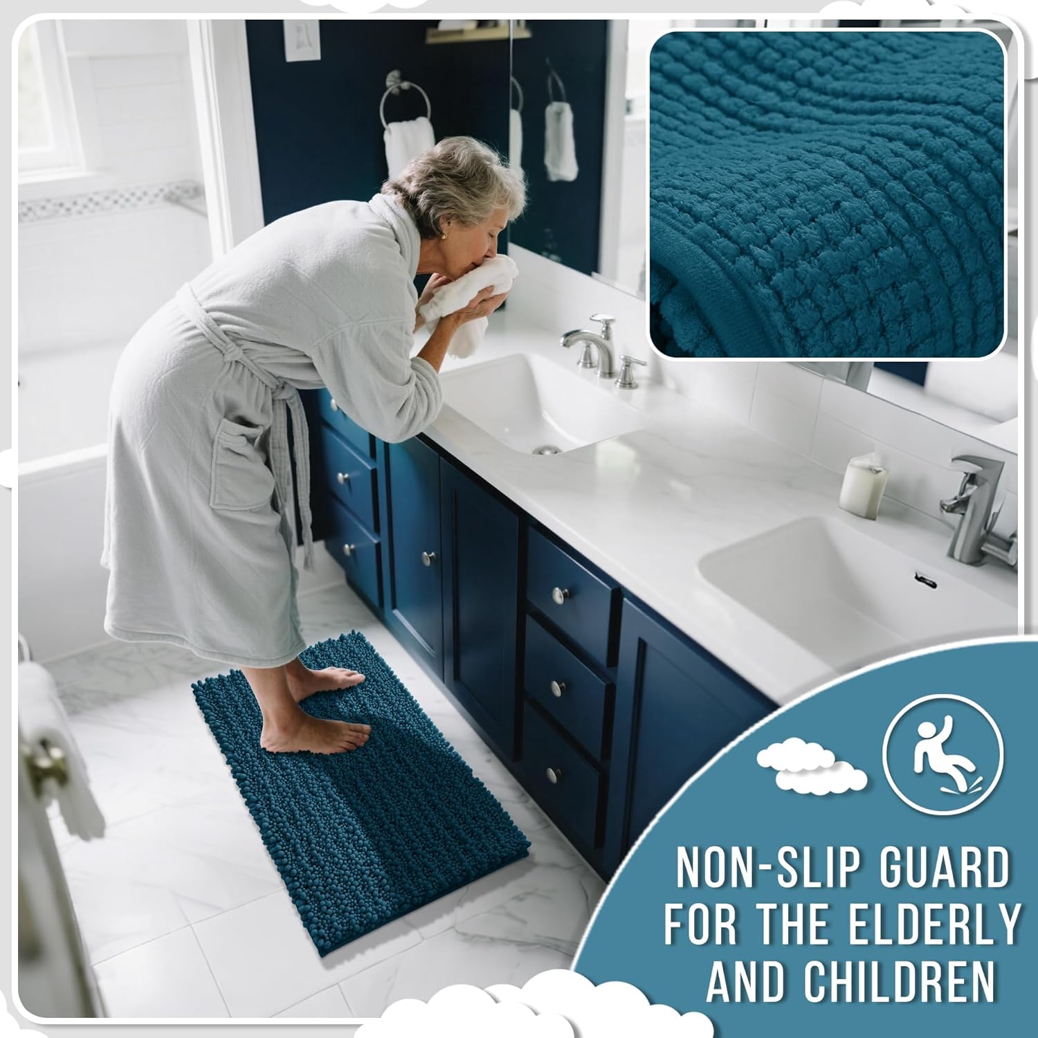 Yimobra Long Bathroom Rugs Non Slip Washable 44x24 Inch - Ultra Soft Absorbent Chenille Bath Mat, Quick Dry Shaggy Floor Carpet for Tub Shower, Peacock Blue Home Decor Accessories