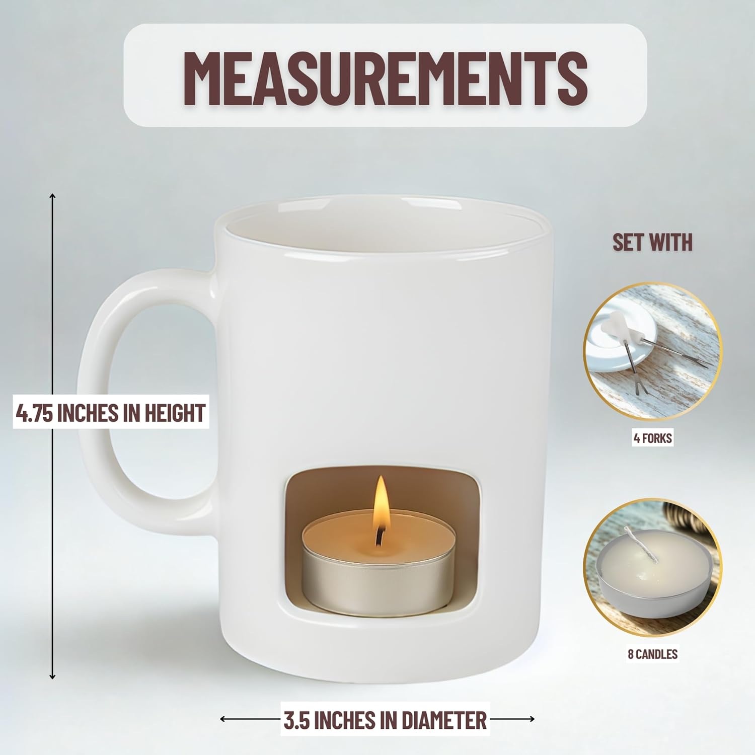 Evelots Fondue Pot Set for Chocolate, Cheese, Candy (2 Pack) Mini Ceramic Fondue Mugs Gift Set with 4 Forks & 8 Candles - Great for Date Night Birthday & Wedding Gifts
