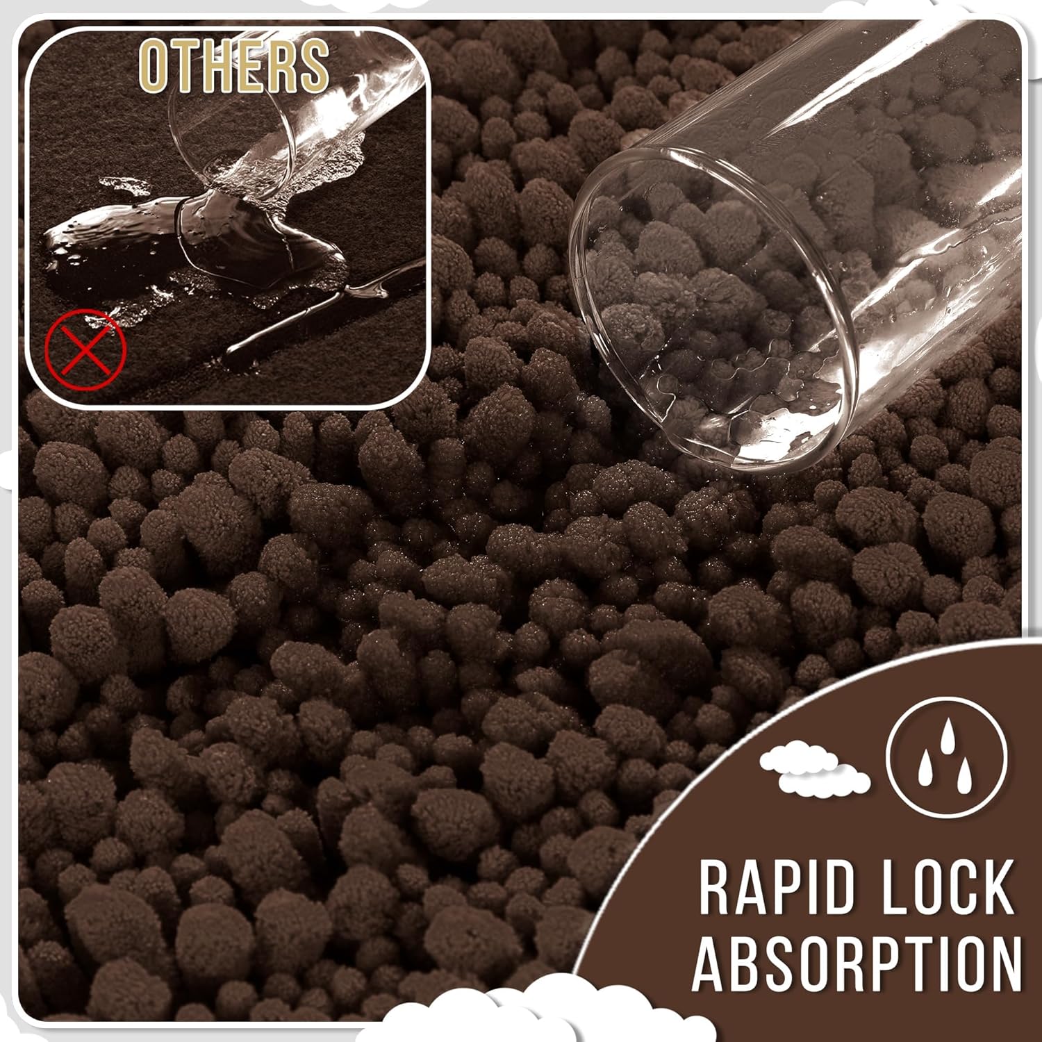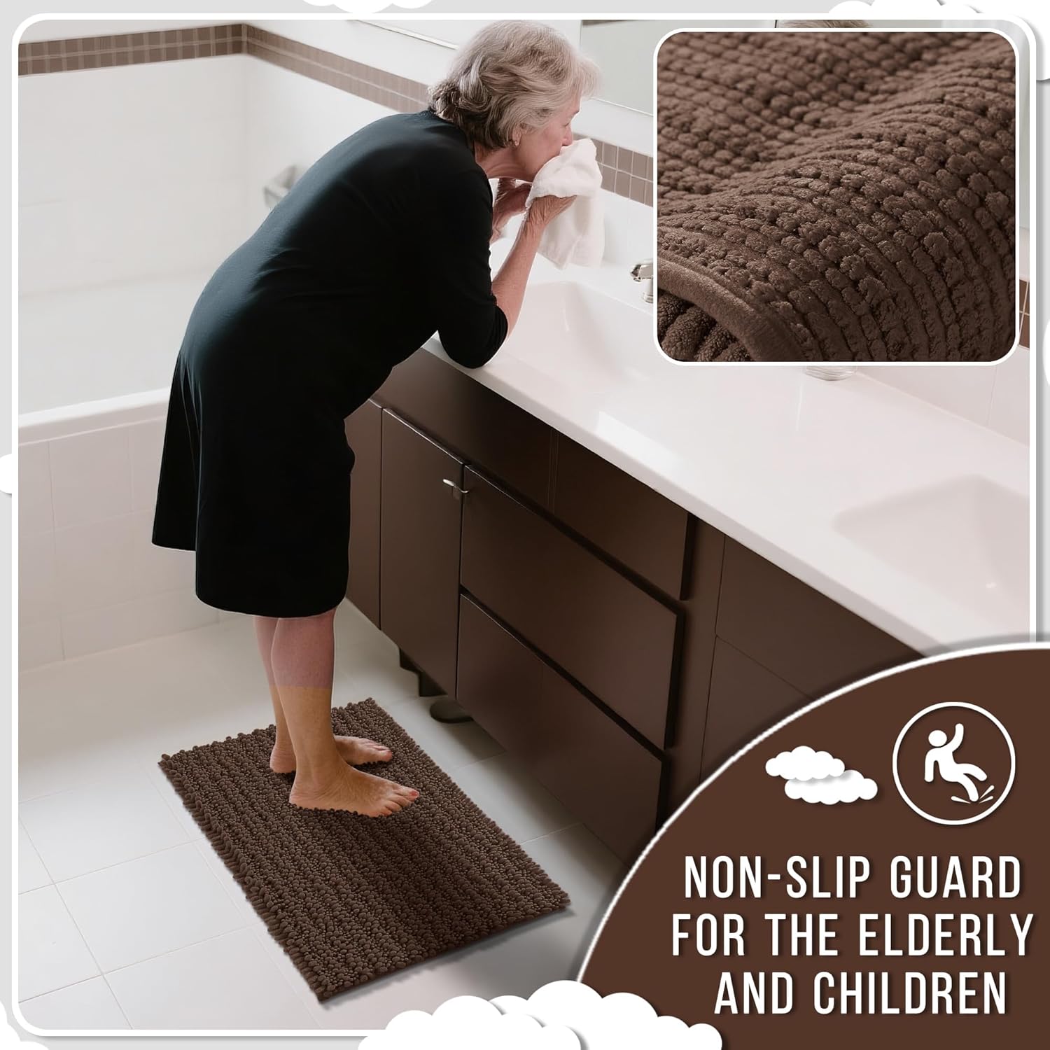Yimobra Bathroom Rugs Non Slip Washable 24x17 Inch - Ultra Soft Absorbent Chenille Bath Mat, Quick Dry Shaggy Floor Carpet for Tub Shower, Brown Home Decor Accessories