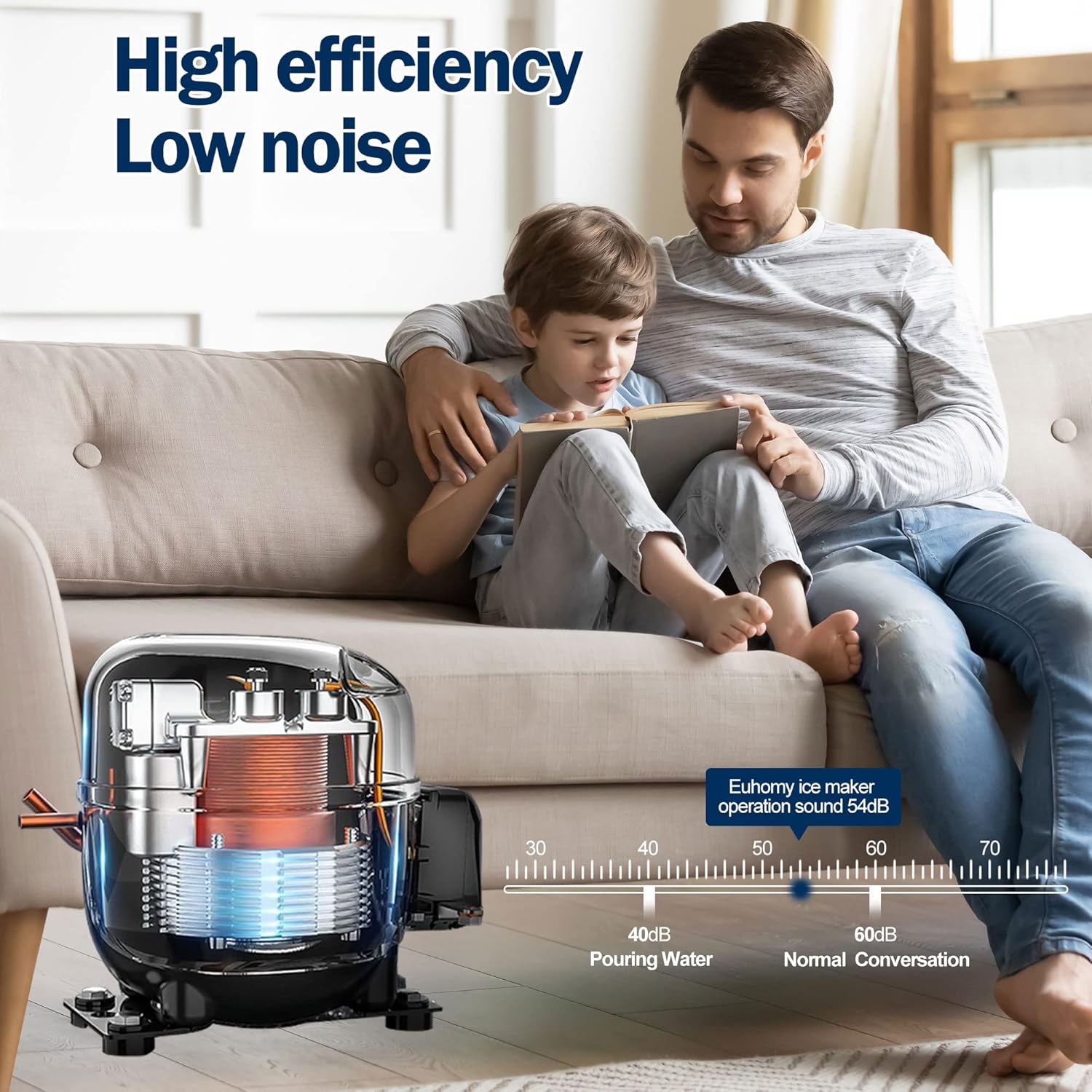 - EFFICIENT & QUIET - You can enjoy the experience of this under counter ice maker all the time. The powerful compressor allows the under counter ice machine to complete the ice making process efficiently without causing too much noise. High efficiency and low noise provide you with a comfortable environment to enjoy your high-quality ice. At the same time, Euhomy industrial ice maker has an energy certificate to help you save electricity bills. In the long run, this will good for your wallet.
