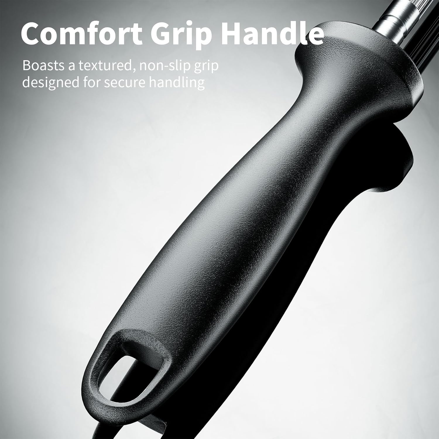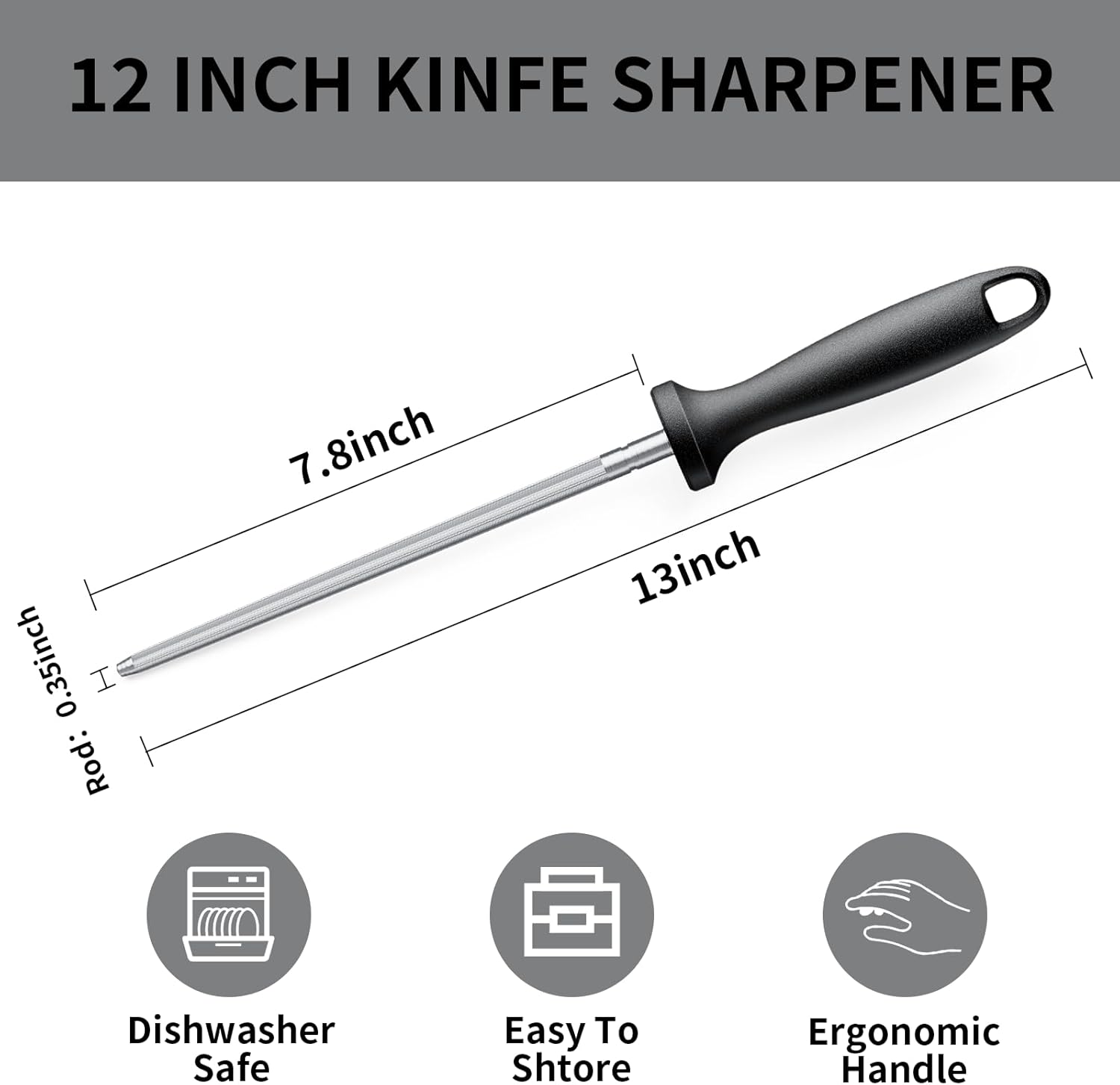 Knife Sharpener Rod, Kitchen Knives Sharpener Carbon Steel Professional Knife Sharpening Steel, Honing Rod with Hanging Holes (13 inches)