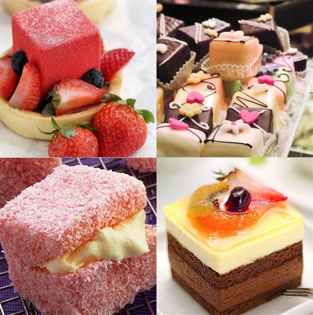 OCPO KITCHEN Cube Silicone Mold for Baking Mousse Cake, French Dessert, Pastry, Chocolate, Brownie, Ice Cream, Pudding, Ice Mold, 3D Cube Shape (8-Cavity)