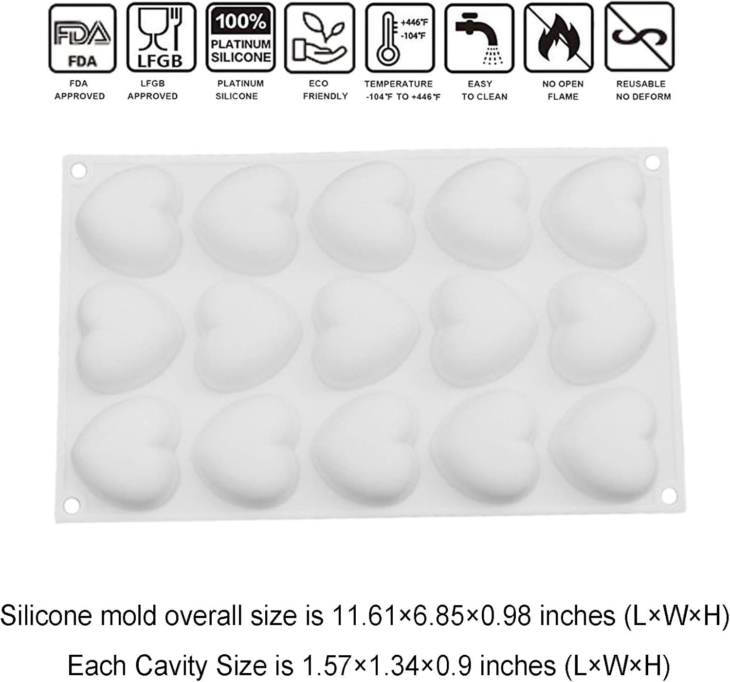 OCPO KITCHEN Mini Heart Silicone Molds for Baking Mousse Cake, Candy, Chocolate, Pastry, Truffle, Cupcake, Jelly, Cookie, Pudding, Cake Decoration Mold, 3D Heart Shape (15-Cavity)