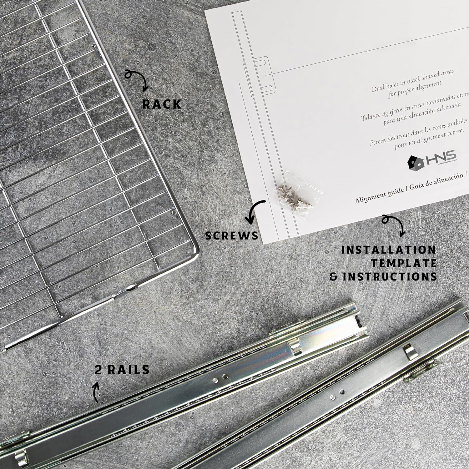 - HIGH QUALITY: Made of durable metal with chrome finish the pull out shelf for kitchen cabinet is simple and easy to install. Designed to fit any style of cabinetry and easy to clean.