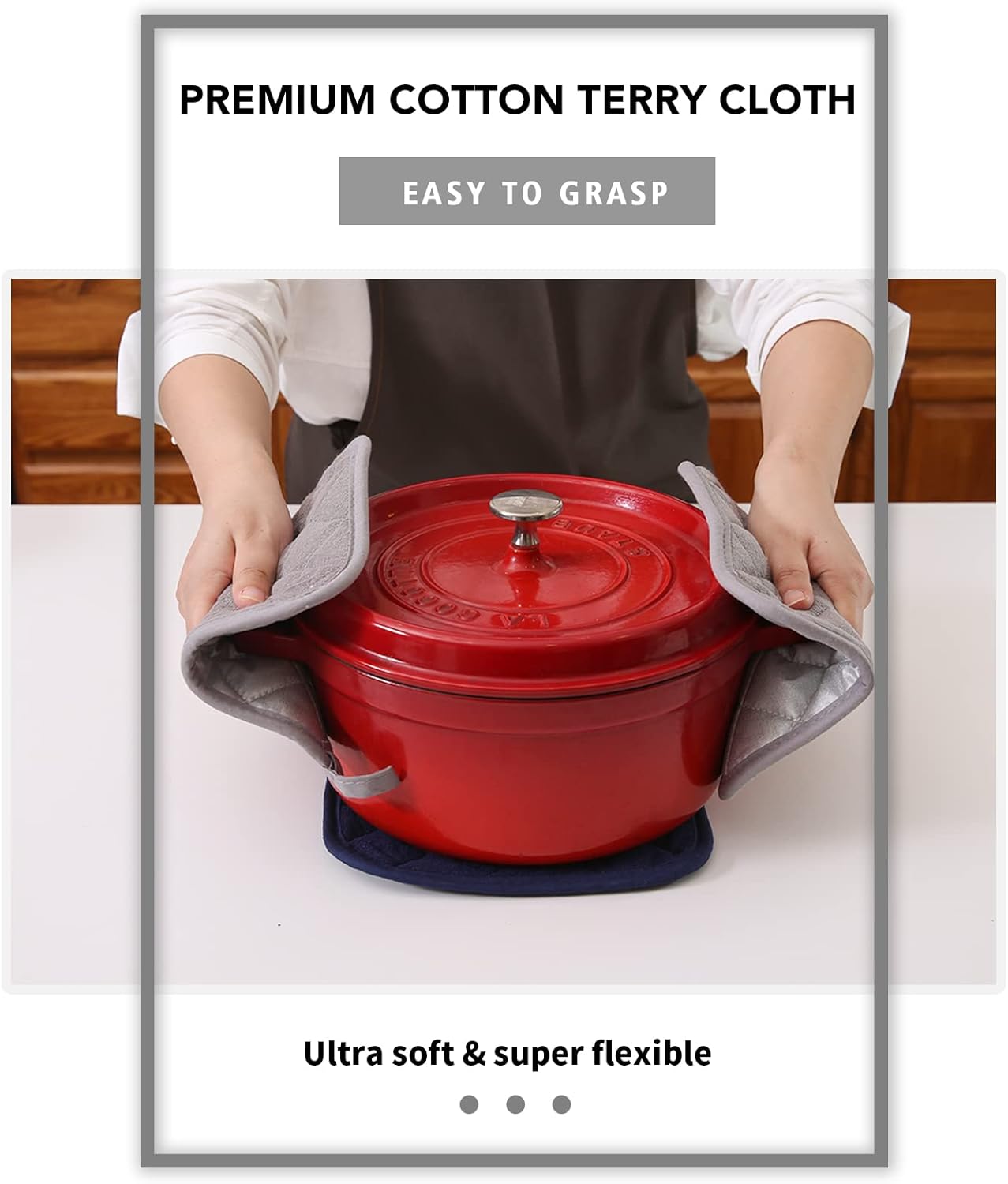 Joyhalo 4 Pack Pot Holders for Kitchen,Cotton Oven Holder with Great Heat Resistance,Non Slip Hot Pads for Kitchen Clearance,Grey