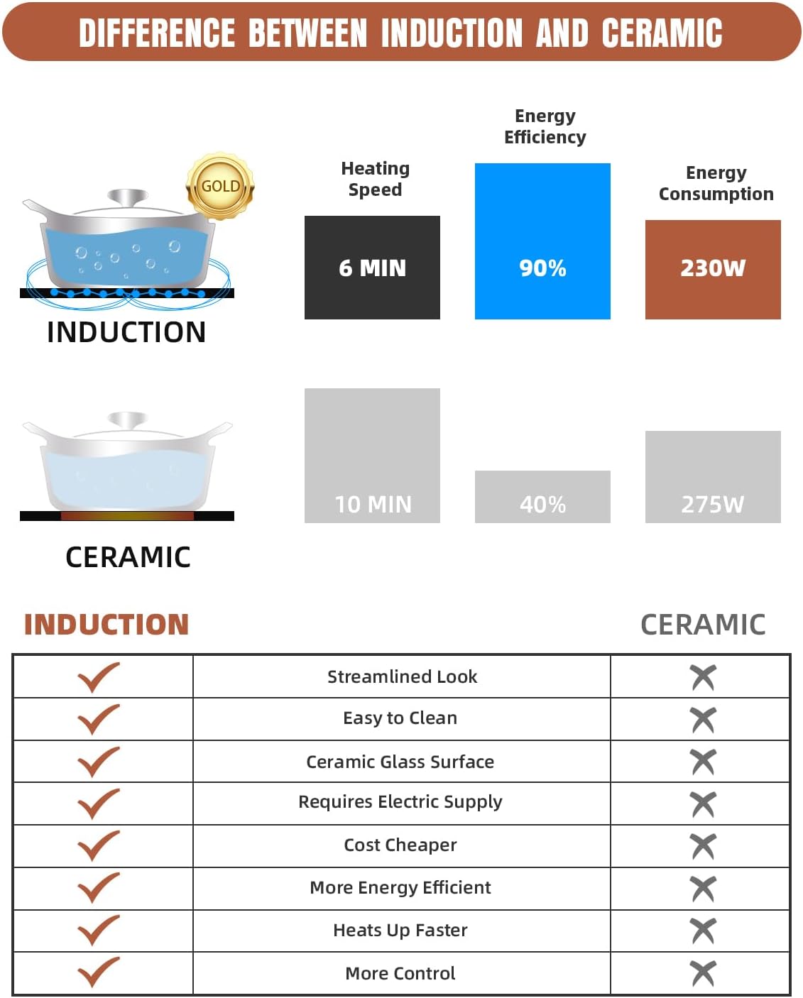 - Enjoy minimal cleanup with stain and heat discoloration resistant spills can’t burn onto the surface, easy-to-clean vitro ceramic smooth surface glass will provide you with a reliable cooktop for years to come.