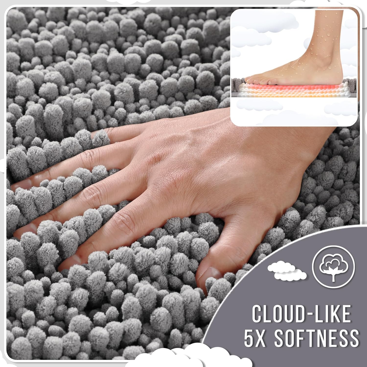 - Ultimate Cloud-Like Soft Comfort: Experience walking on clouds with our extra thick chenille bathroom mat! The ultra plush high pile density cradles your feet, banishing cold tiles after showers. It is perfect for adding warmth to any bathroom floor, transforming routine steps into luxury moments