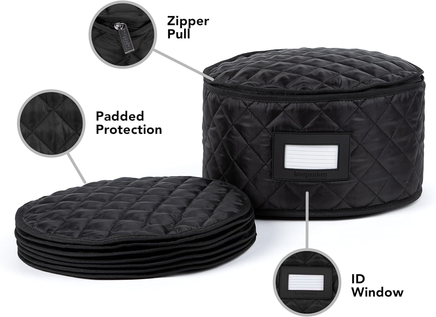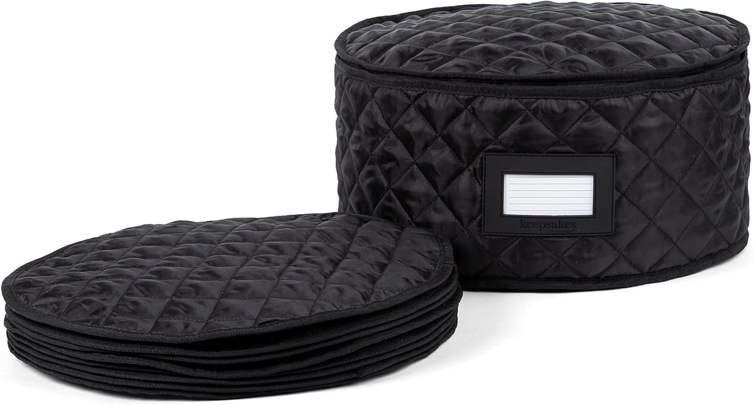 Covermates Keepsakes - Dish Storage - Padded Protection - ID Window - Stain Resistant - Machine Washable - China Storage, Black