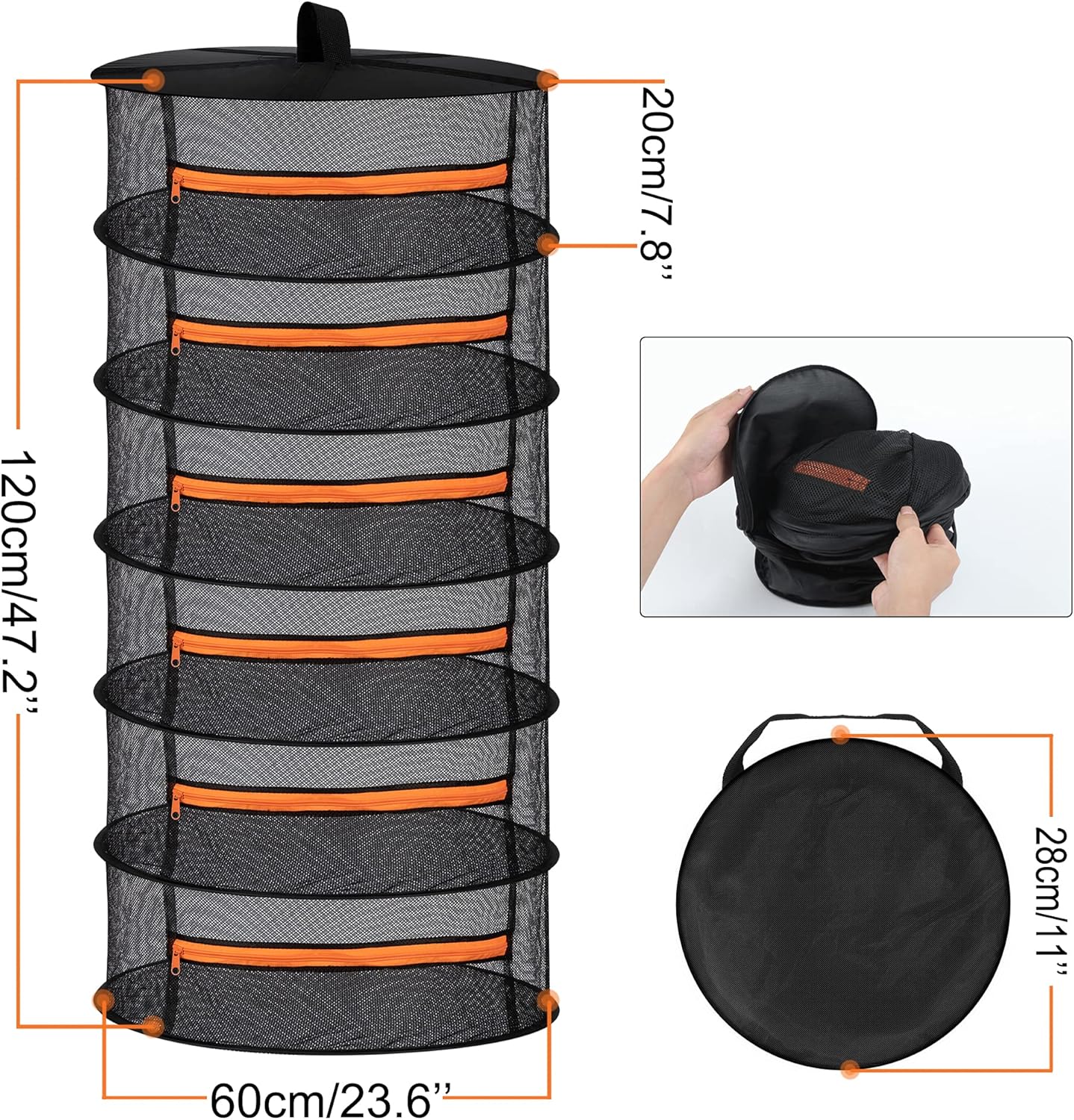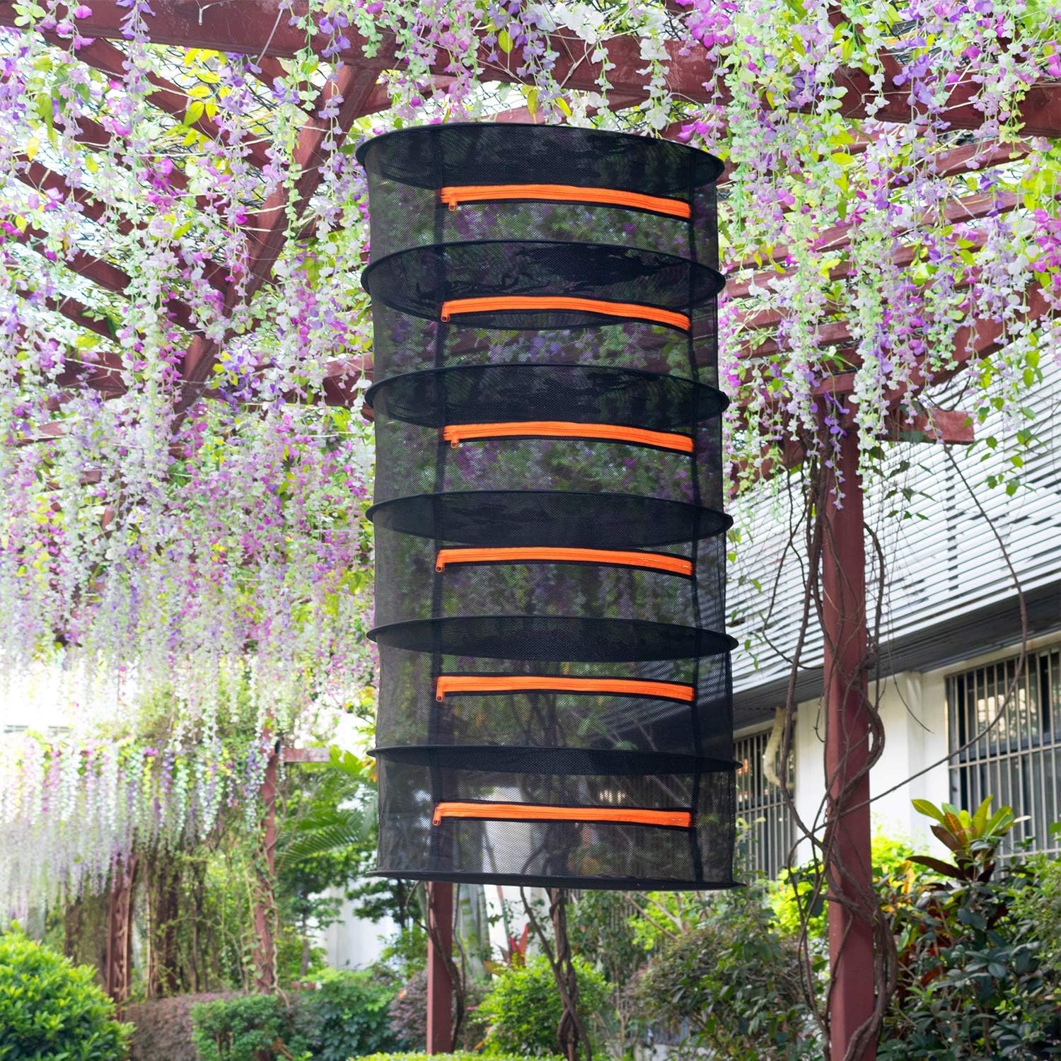 Desy & Feeci Herb Drying Rack-2ft Diameter 6 Layer Folding Mesh Hanging Basket Dryer Net with Zippers for Seeds Flowers Buds Plants Garden Outdoor Bumper Harvest(D24xH47 inch)