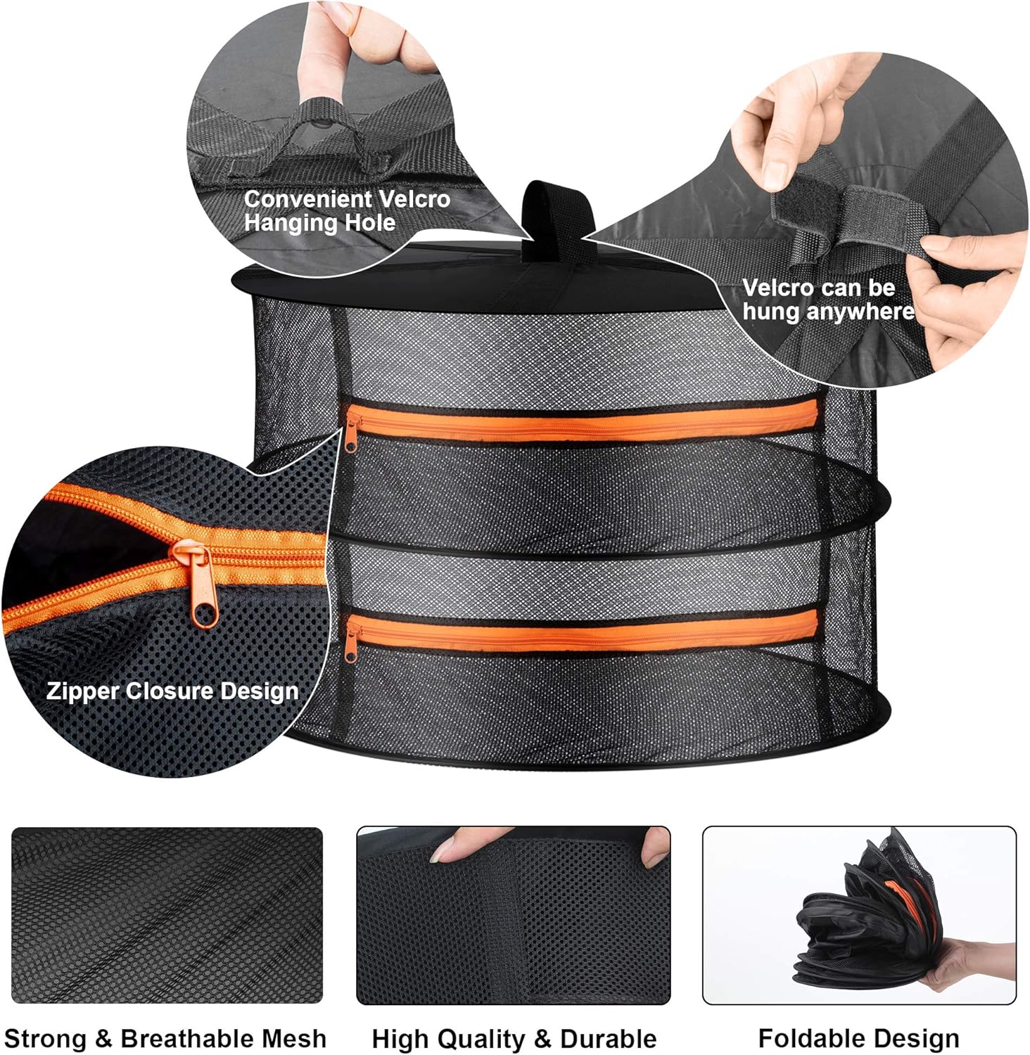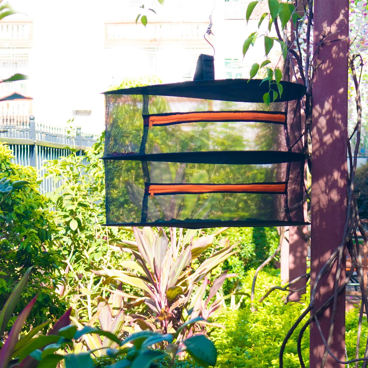 Desy & Feeci Herb Drying Rack- 2ft Diameter 2 Layer Folding Mesh Hanging Basket Dryer Net with Zippers for Seeds Flowers Buds Plants Garden Outdoor Bumper Harvest(D24xH16 inch)