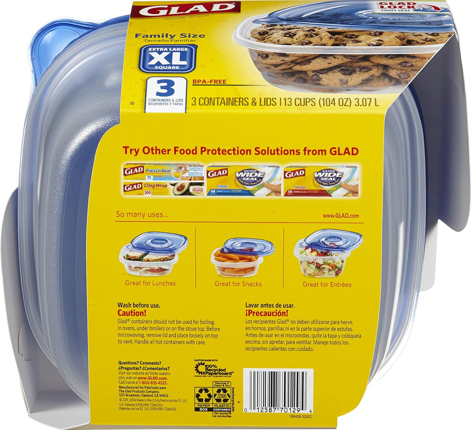 Glad Family Size Food Storage Containers, XL Square (104 Oz) - 3 Count, Standard