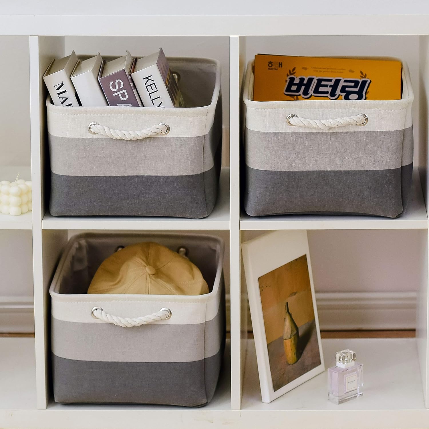 Large Storage Baskets for Shelves, Fabric Baskets for Organizing, Collapsible Storage Bins for Closet, Nursery, Clothes, Toys, Home & Office [3-Pack, Gray Gradient]