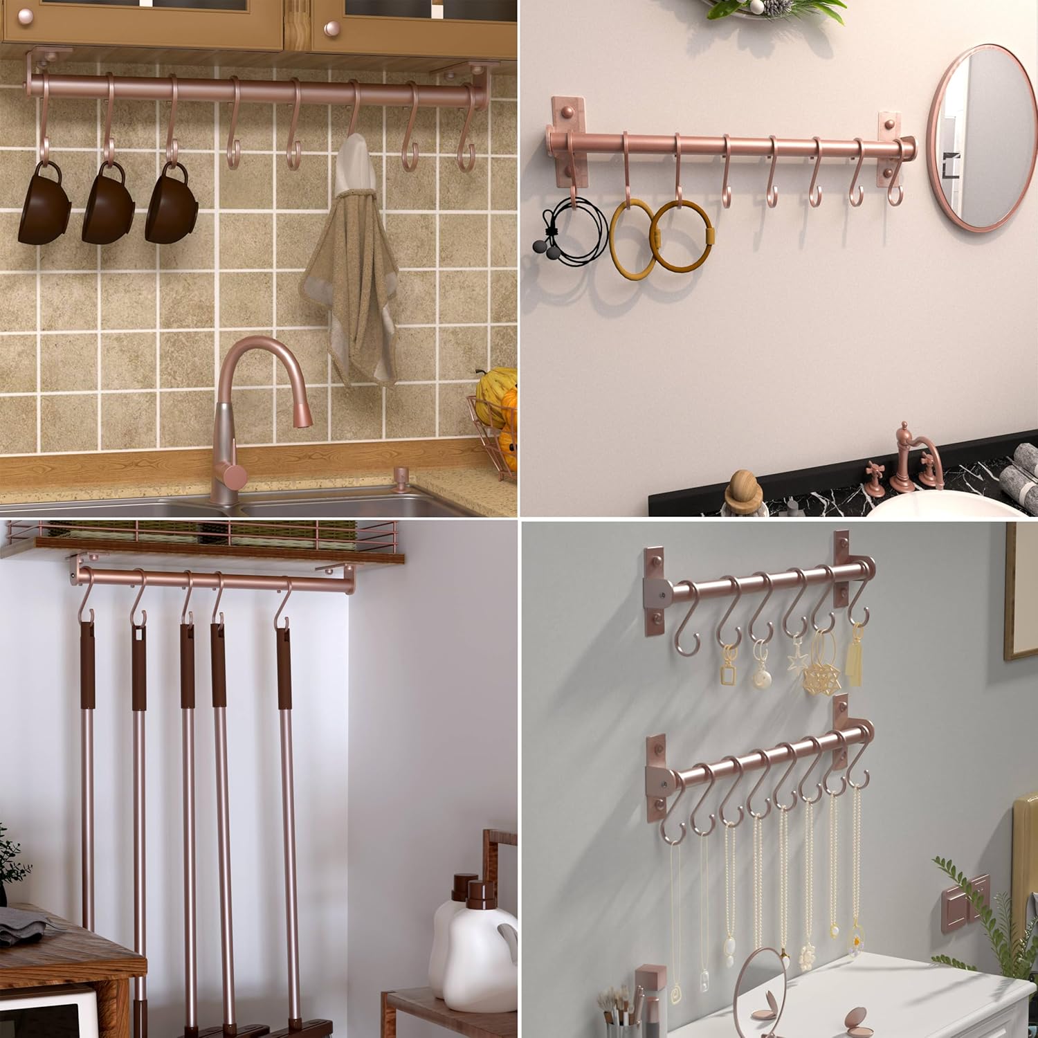 - Easy to install, sizes: 15-3/4 L x 4-1/2 H x 1-5/8 inch, including 1 x kitchen rail with 8 S hooks, mounting hardware, rose gold color,