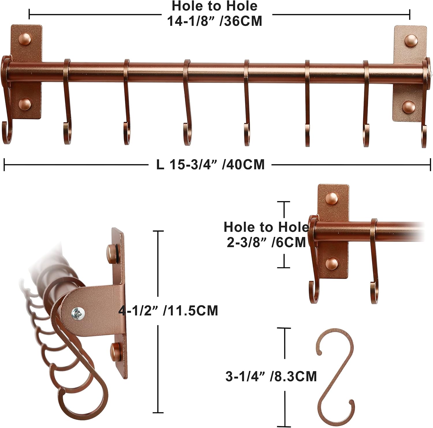 - Easy to install, sizes: 15-3/4 L x 4-1/2 H x 1-5/8 inch, including 2 x kitchen rail with 16 S hooks, mounting hardware, rose gold color,