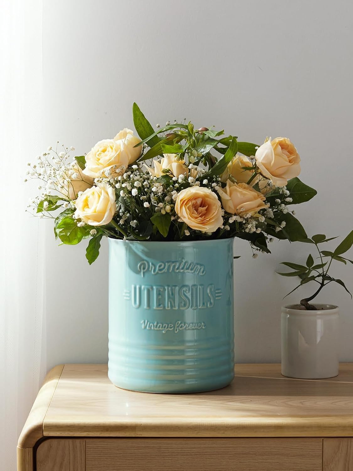 - Stable and Fall-Prevention. Unlike common metal or stainless steel, this ceramic utensil holder is heavier and stable, avoiding falling down and spilling all over the place.