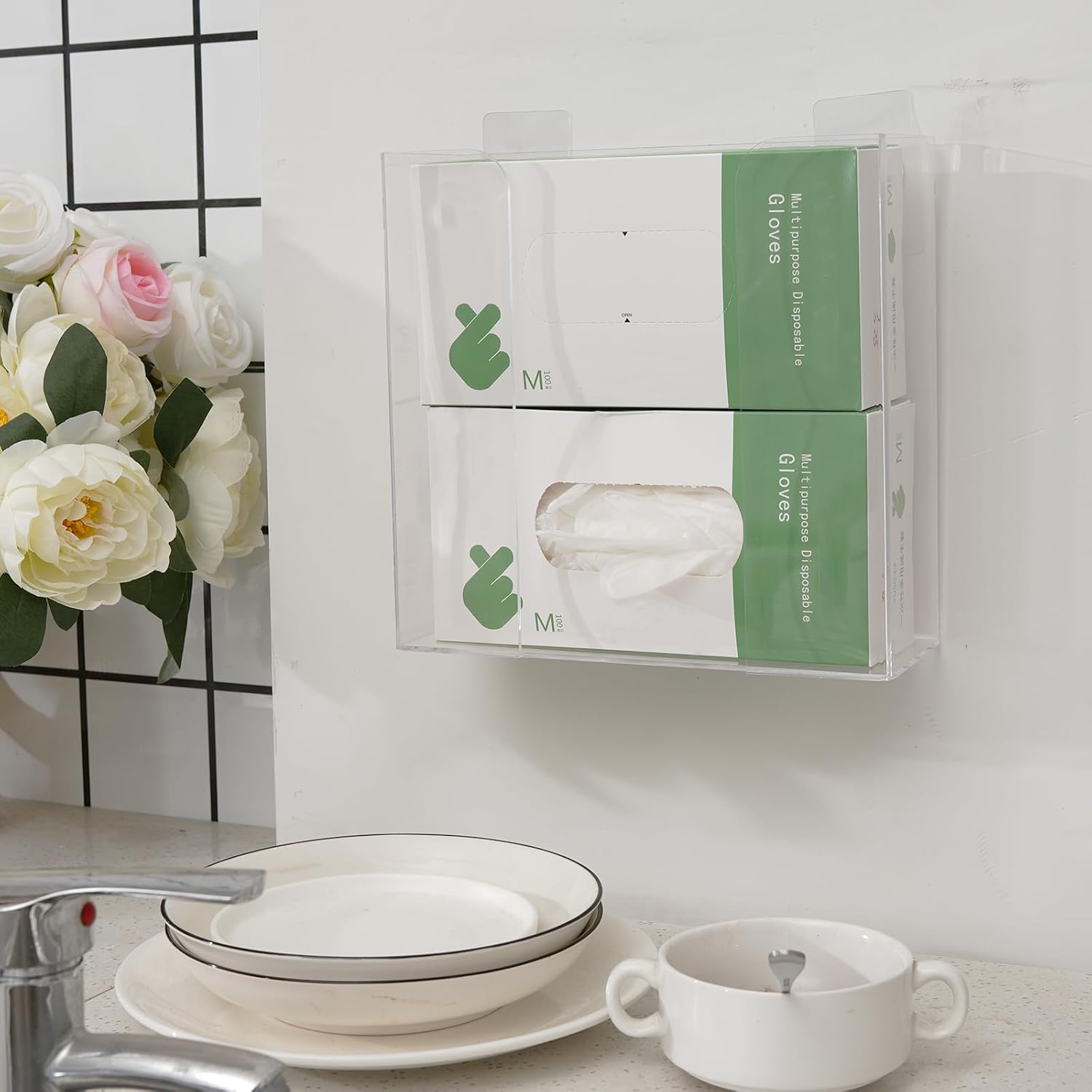 - Non Contact Get: Our wall mounted glove box dispenser allows you to remove gloves, masks, or tissues without touching the box or other unnecessary surfaces. An excellent choice for clinics, laboratories, and doctor's offices