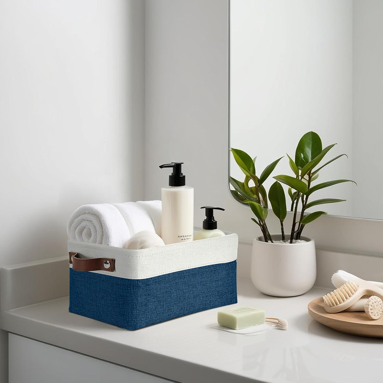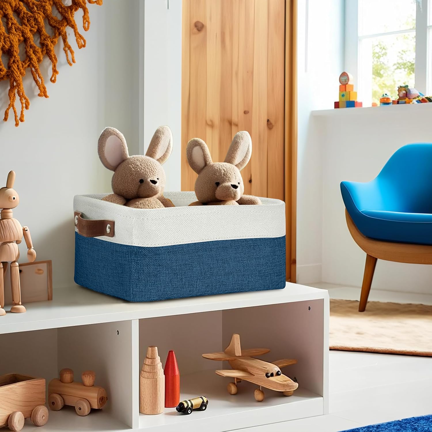 - Durable Design: DECOMOMO's baskets feature a sturdy metal frame, extra thick EVA exterior, polyester interior, 2.5mm MDF fiberboard bottom, and faux leather handles capable of holding up to 15 lbs.