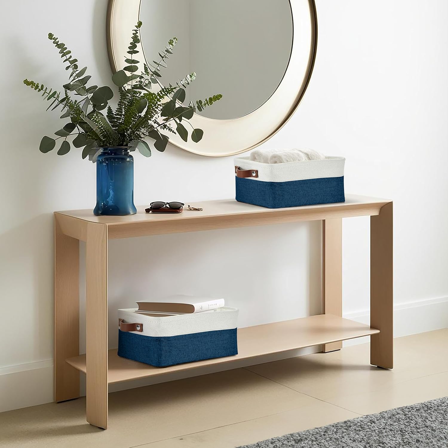 DECOMOMO Small Storage Basket, Closet Storage Bins, Baskets for Organizing Shelves (Navy Blue & White, Small - 6 Pack)